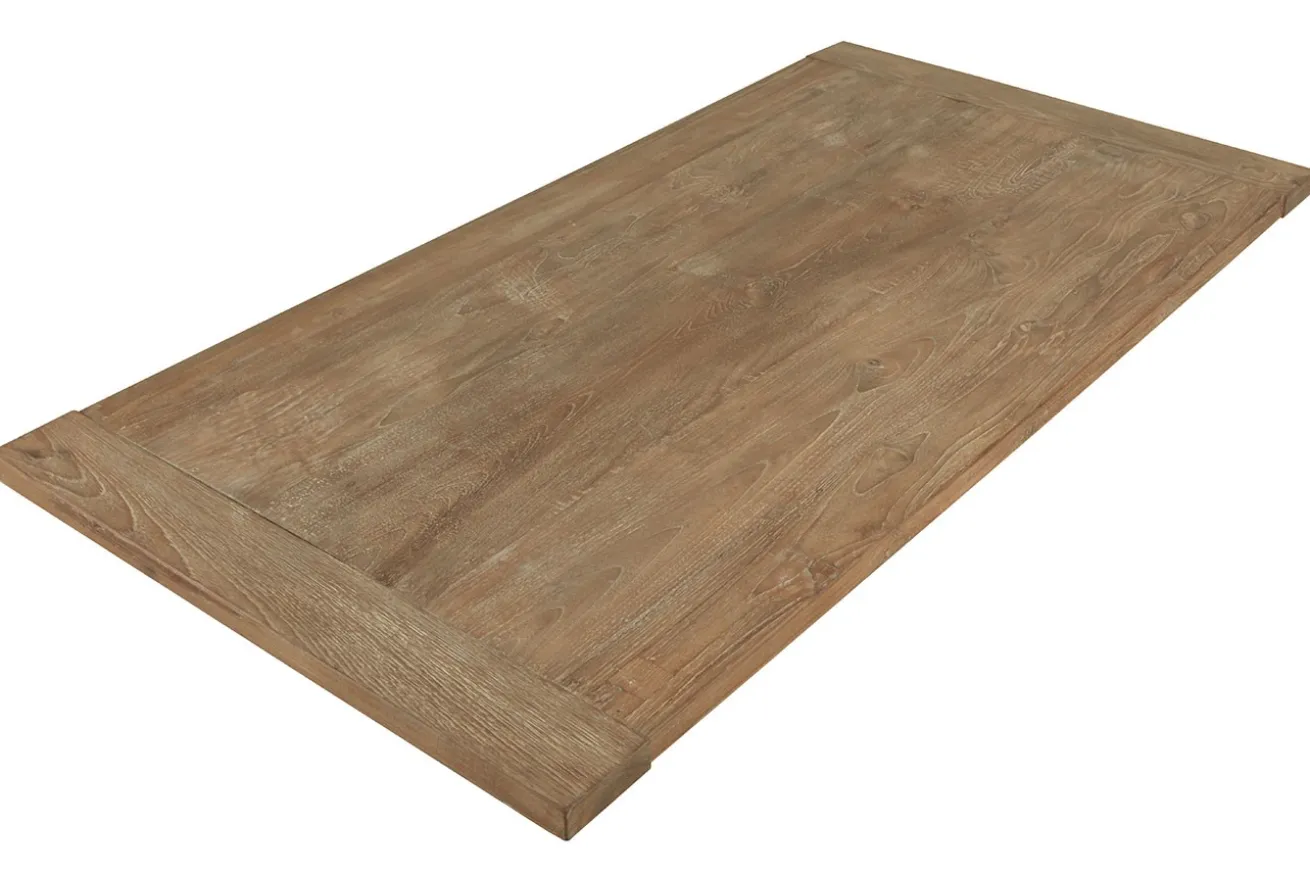 Erfahren Sie wahre Handwerkskunst und zeitlose Schönheit mit unserer rechteckigen Tischplatte aus massivem, recyceltem Teakholz. Jedes Stück erzählt eine Geschichte vergangener Zeiten und fügt Ihrem Raum eine einzigartige, natürliche Note hinzu. Die Massivholztischplatte strahlt in ihrer natürlichen Farbe und bewahrt stolz ihre unbehandelte Oberfläche, um die Essenz des Teakholzes in seiner reinsten Form zu präsentieren.