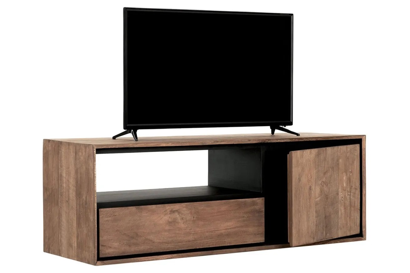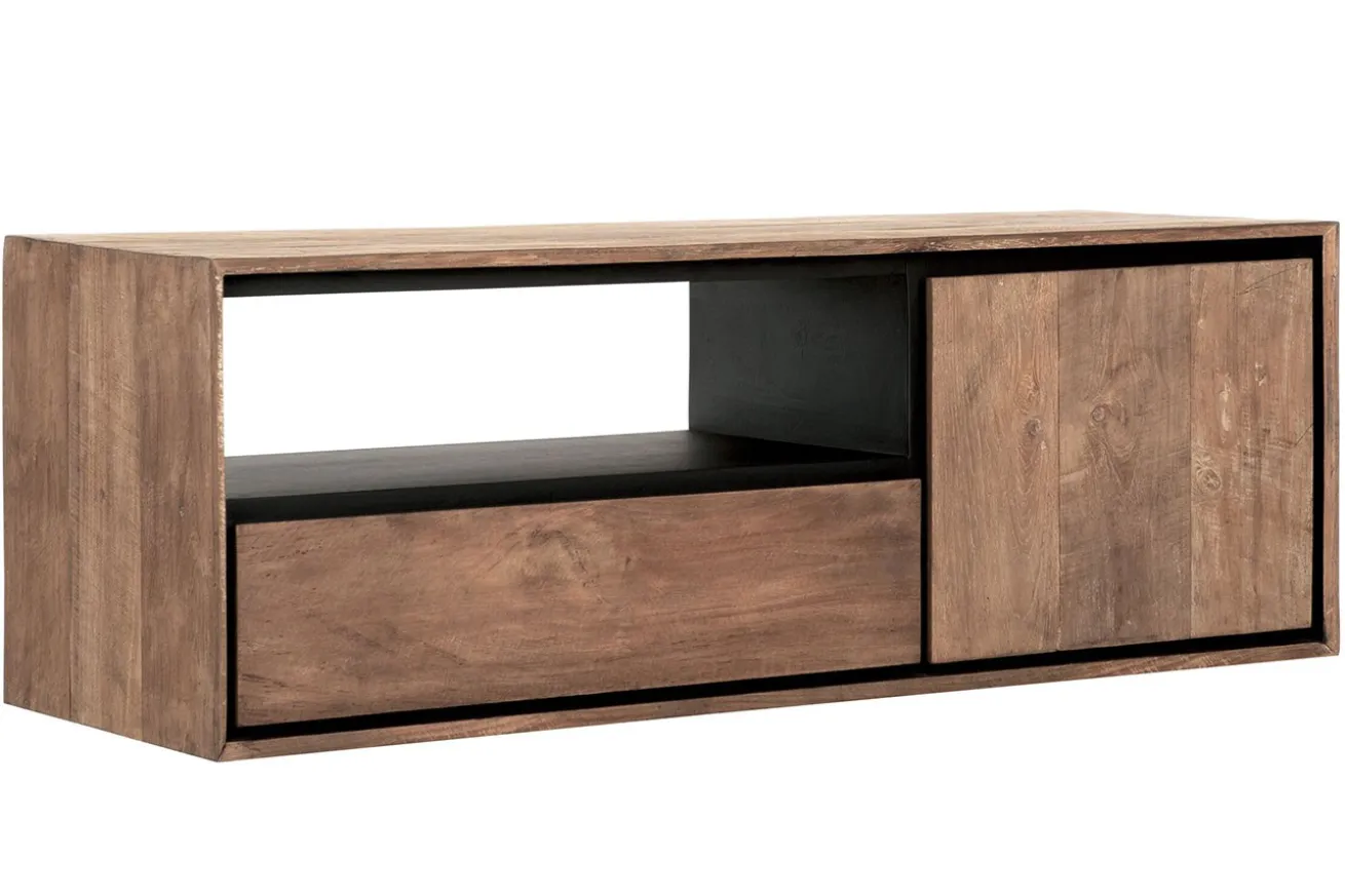 Bringen Sie Ihren Raum zum Strahlen, indem Sie dieses TV-Regal zum Aufhängen aus recyceltem Teakholz integrieren. Die einzigartige Kombination aus Natur und Design macht dieses Regal zu einem Blickfang und einem praktischen Aufbewahrungsort für Ihre Entertainment-Geräte