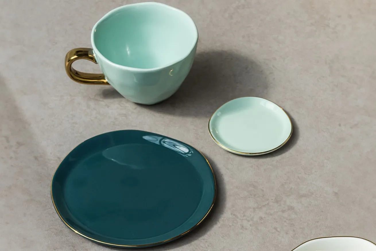 Ergänzen Sie Ihre Tassen mit einem glanzvollen Finish und setzen Sie mit unseren Untertassen aus Porzellan in verschiedenen Farben und goldenem Griff ein Statement für Stil und Qualität. Machen Sie Ihre Kaffeepausen und Teestunden zu einem wahren Genuss für die Sinne.