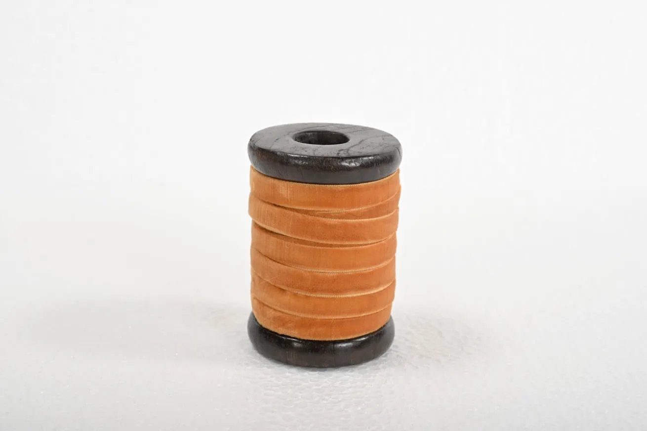 Entdecken Sie unsere exquisite orangene Samtbandrolle – ein zauberhaftes Accessoire, das Ihrer Kreativität keine Grenzen setzt. Dieses luxuriöse Samtband ist auf eine robuste Holzkordel gewickelt und erstreckt sich über eine großzügige Länge von insgesamt 10 Metern.