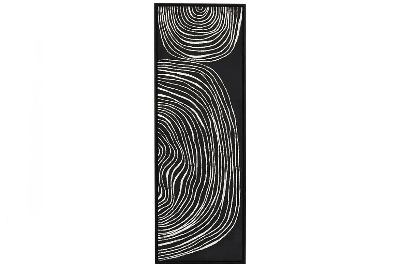 Entdecken Sie die faszinierende Welt der Kunst mit unserem einzigartigen Wandbild, das mit lebendigen Ölfarben geschaffen wurde. Weiße Kreise auf einem tiefen schwarzen Hintergrund bilden ein abstraktes Meisterwerk, das in einem eleganten Holzrahmen eingefasst ist und Ihre Wände in ein visuelles Fest verwandelt.