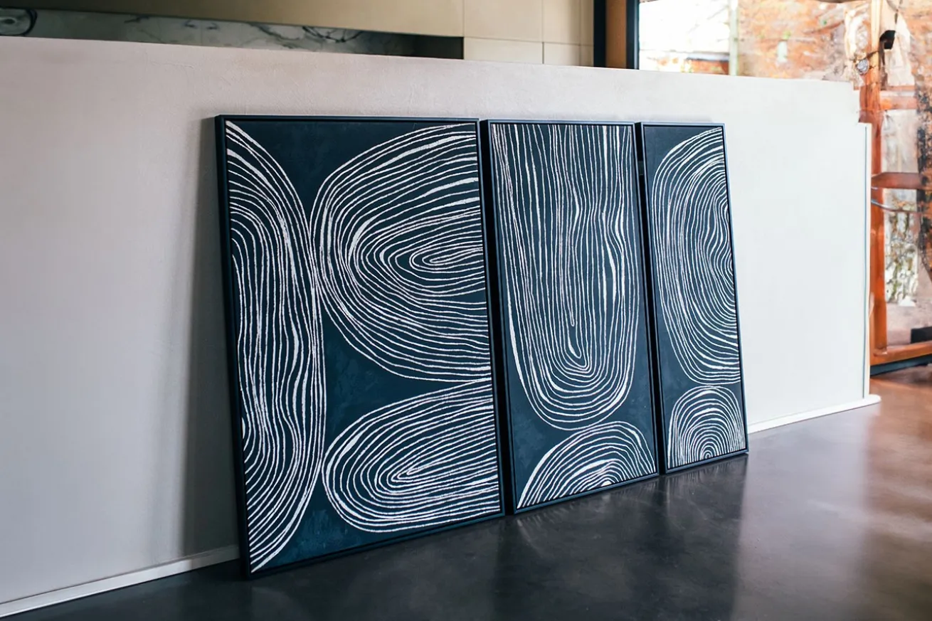 Der Holzrahmen setzt nicht nur das Kunstwerk perfekt in Szene, sondern verleiht dem Gesamtbild auch einen Hauch von Natürlichkeit. Die Kombination aus den organischen Texturen des Holzrahmens und der abstrakten Ölmalerei schafft eine ausgewogene Mischung aus Eleganz und Kunst.