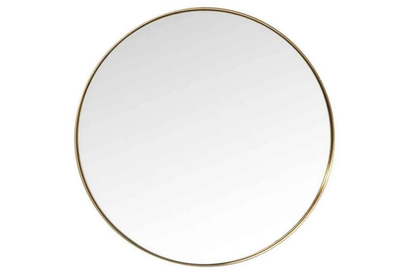 Dieser große runde Wandspiegel der durch tolle Proportionen, eine reduzierten Silhouette und einen Rahmen aus messingfarbenem Stahl besticht, eignet sich nicht nur im Flur, sondern auch im Schlafzimmer an der Wand. Er hat einen Durchmesser von 100cm. Obwohl er kein Ganzkörperspiegel ist, können Sie einen Blick auf Ihr Outfit dennoch erhaschen. Der mögliche Badspiegel kombiniert Glamour mit zeitlosem Chic und ist ideal geeignet für einen modern-eleganten Einrichtungsstil. Dabei vergrößert er optisch Räume auf besonders schöne Weise. Vielleicht möchten Sie ihn im Wohnzimmer über Ihre Couch hängen, um diesen Effekt zu erhalten? Dieser Spiegel ist in weiteren Ausführungen erhältlich.