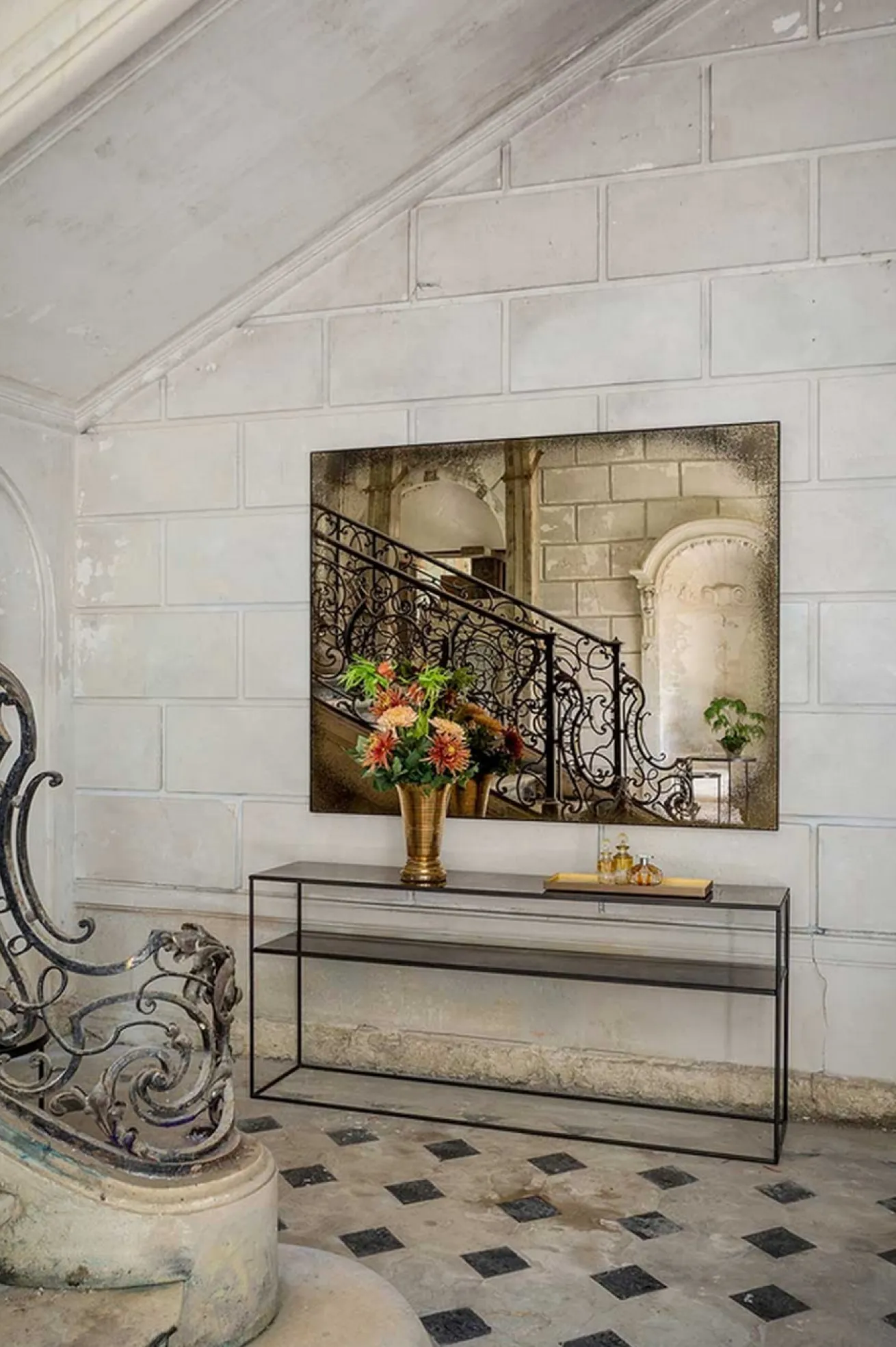 | Material | gealtertes Spiegelglas, Metall |