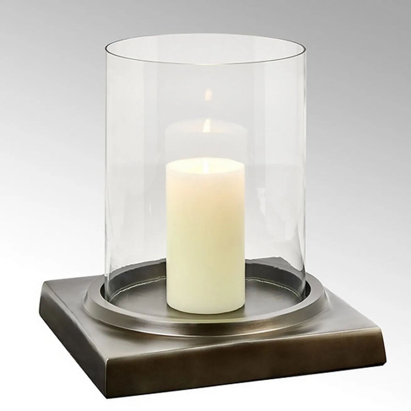 Das Windlicht Herakles besticht mit seiner besonders klaren und schlichten Form die sensibel ausgearbeitet ist. Die Metallfläche wird im Sandgussverfahren hergestellt, sorgfältig in mehreren Arbeitsgängen von Hand poliert und anschließend patiniert. Der Glaszylinder ist mundgeblasen und zeigt die für diesen handwerklichen Herstellungsprozess typischen Merkmale von kleinen Schlieren und Bläschen, das unterscheidet ihn von einem industriel hergestellten Produkt. Wachsreste lassen sich mit warmem Wasser und Spülmittel mühelos entfernen, es empfiehlt sich dies von Hand zu tun. Bei großen Glasgefäßen kann es in der Spülmaschine zu Kühlsprüngen kommen. Herakles darf nicht dauerhaft Feuchtigkeit ausgesetzt sein, dies würde die Oberfläche angreifen.