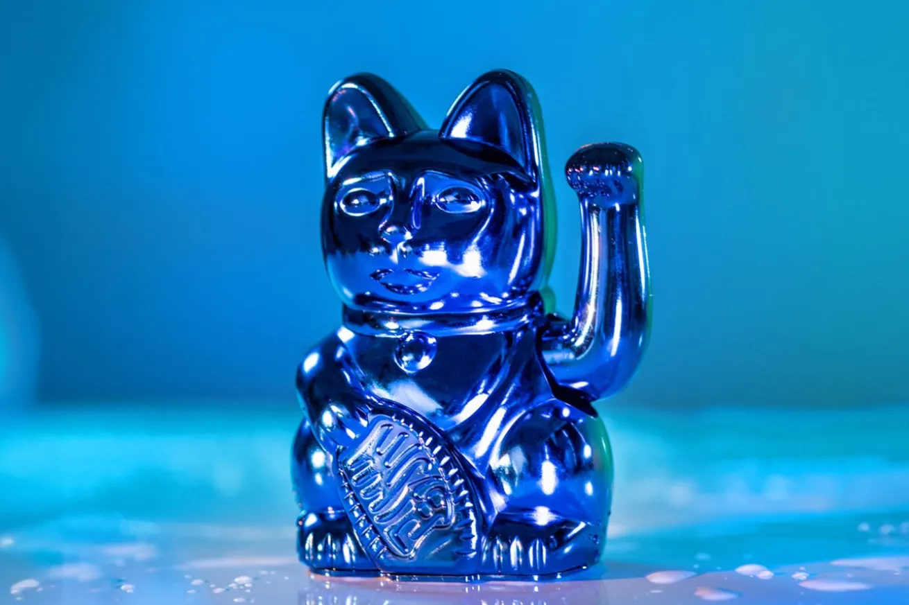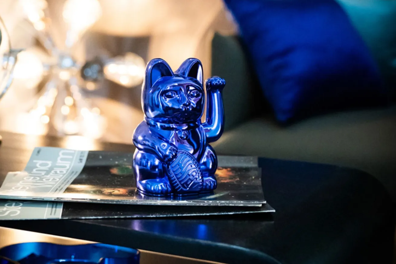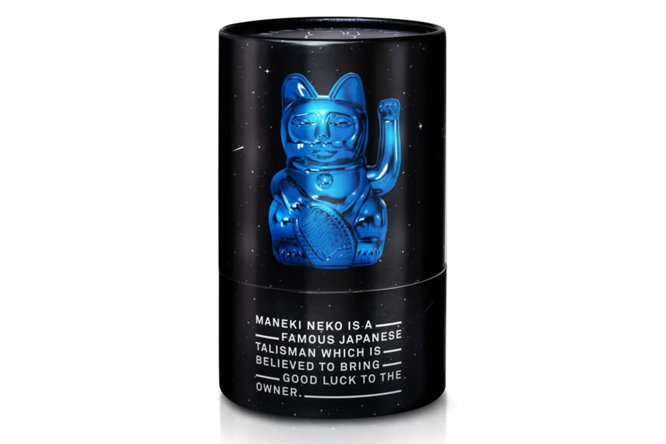 Winkekatze Lucky Cat Cosmic shiny blau