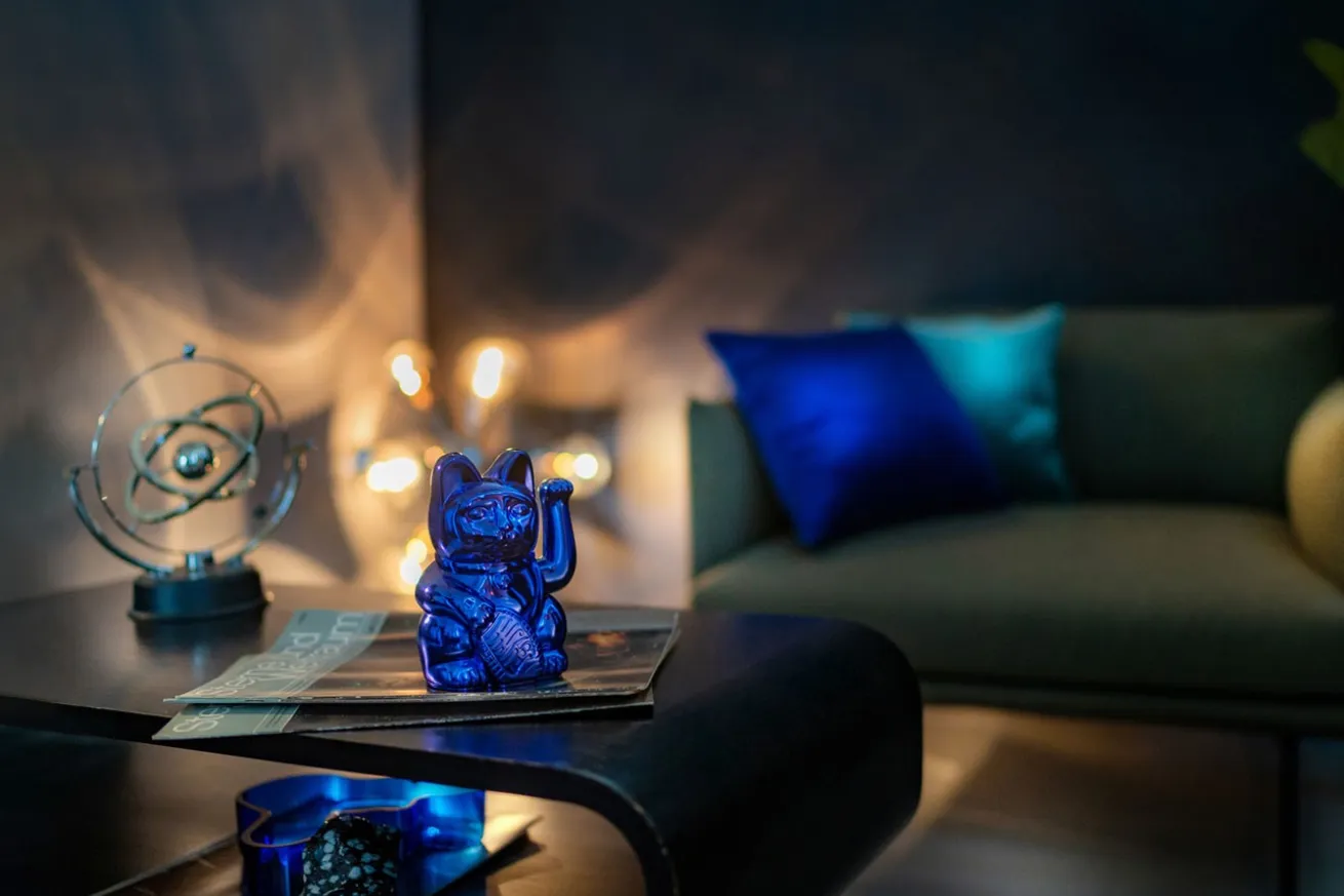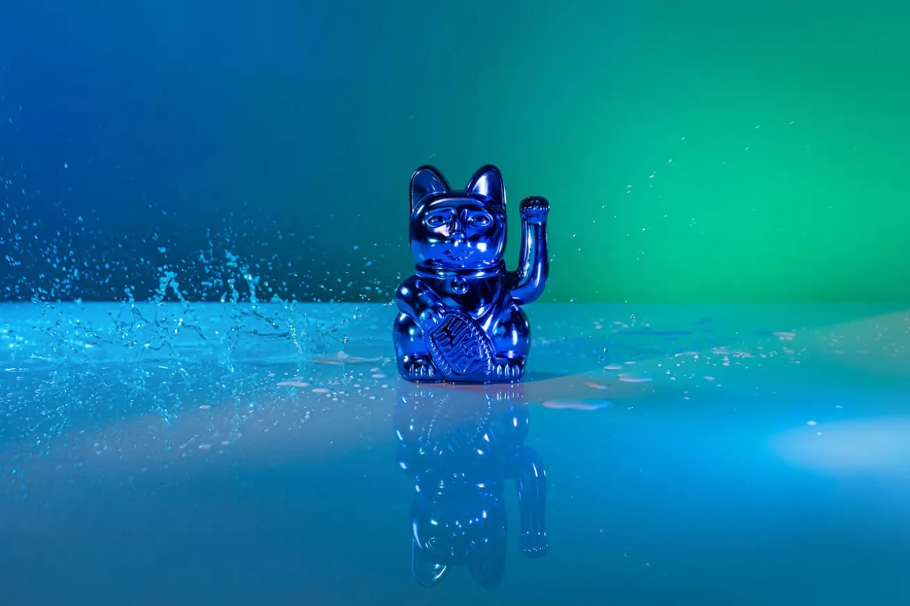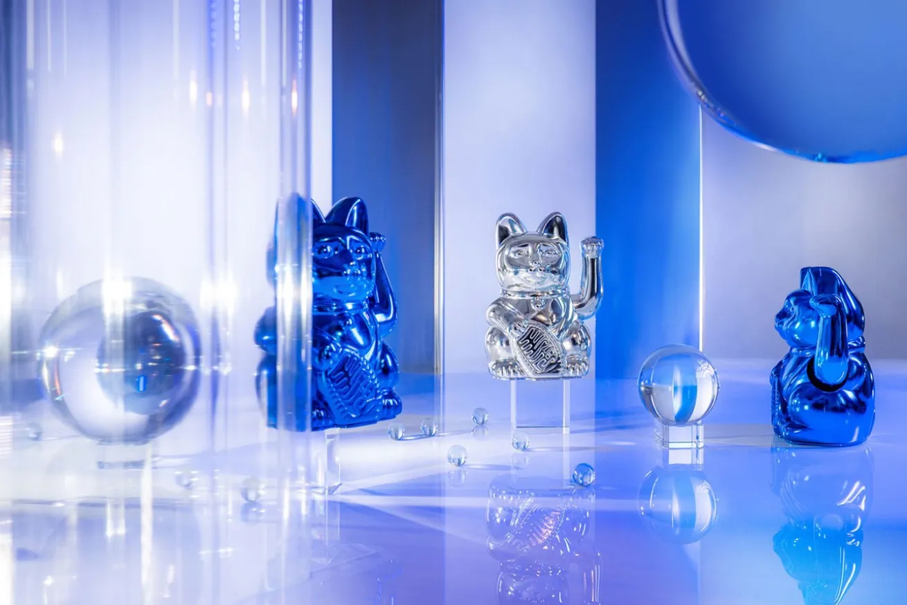 Winkekatze Lucky Cat Cosmic shiny blau