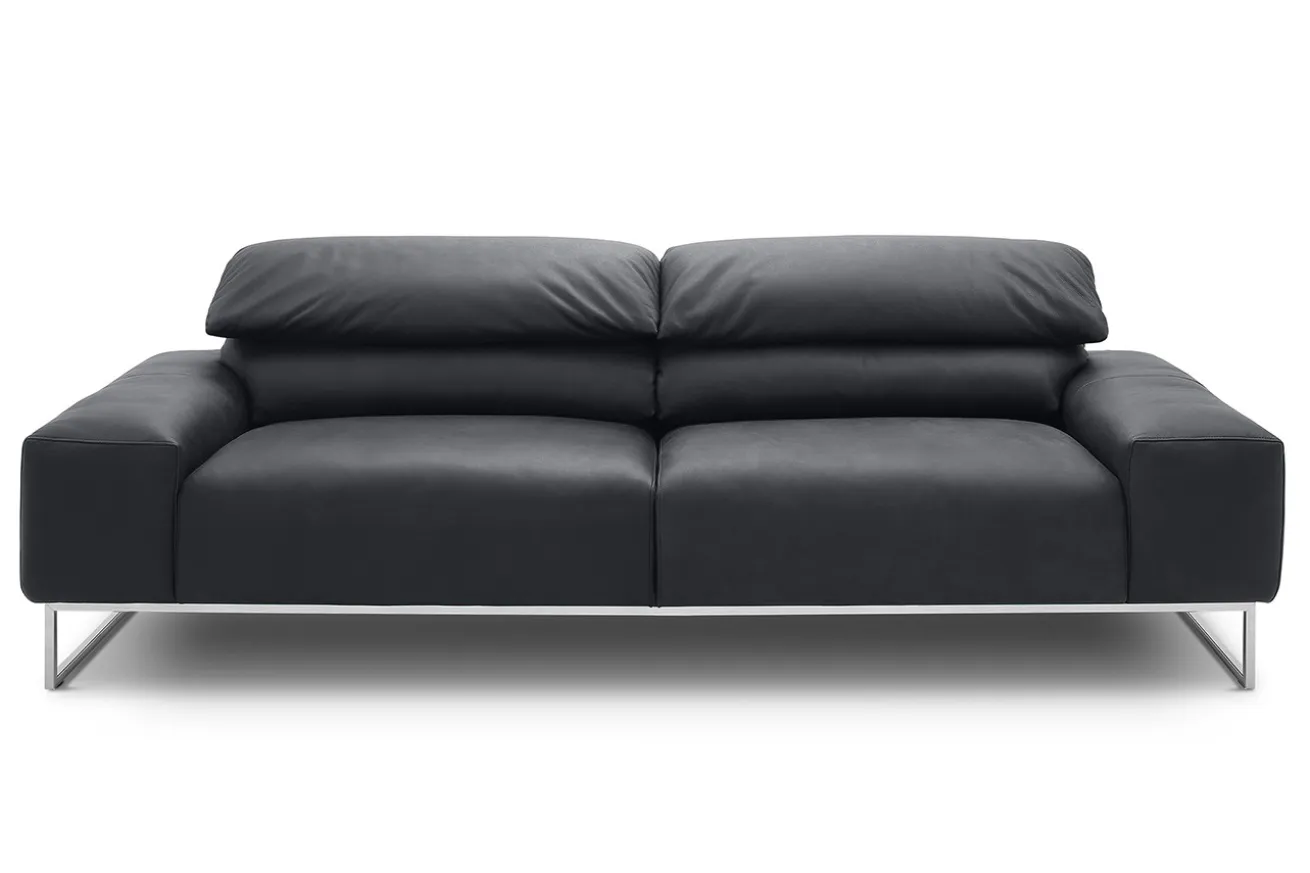 Das tiefe Schwarz des hochwertigen Leders verleiht dem 2-Sitzer nicht nur eine zeitlose Eleganz, sondern sorgt auch für eine markante Ausstrahlung. Die feine Textur des Leders unterstreicht die Qualität und verleiht dem Sofa eine angenehme Haptik, die zum Verweilen einlädt.