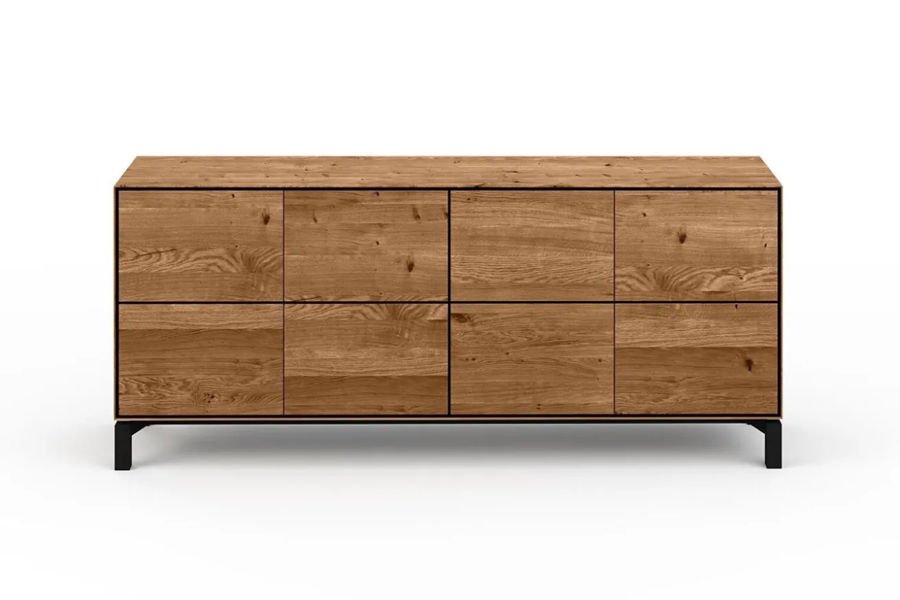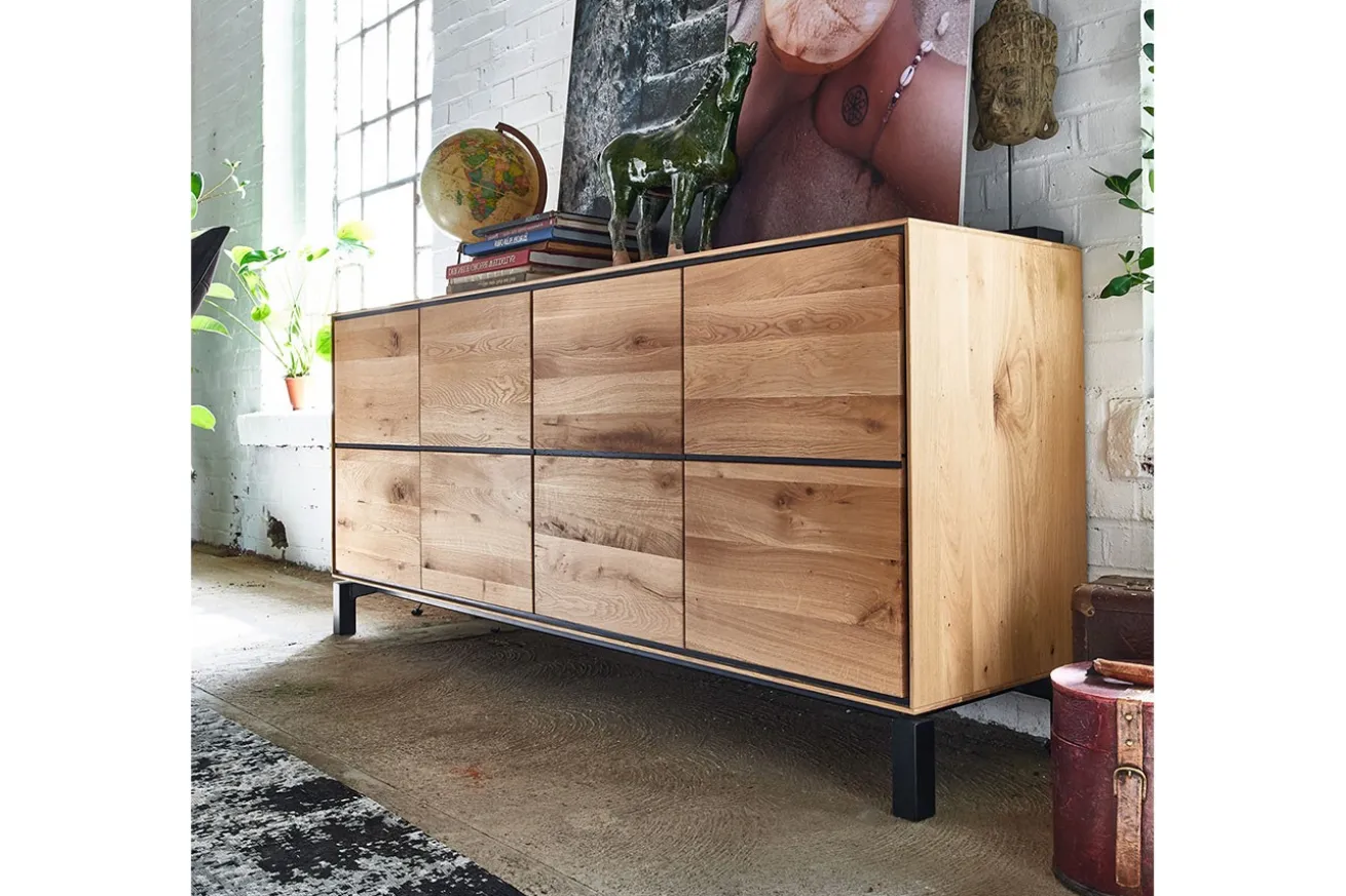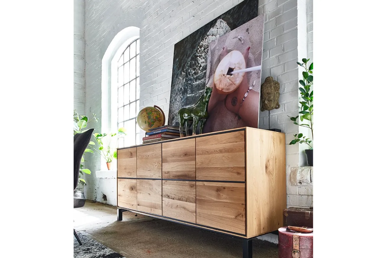 Unsere Anrichte aus Wildeichenholz mit lackierter Oberfläche und vier Türen ist nicht nur ein praktisches Möbelstück, sondern auch ein Kunstwerk, das die Schönheit der Natur in Ihr Zuhause bringt. Verleihen Sie Ihrem Raum einen Hauch von Eleganz und Funktionalität und genießen Sie die zeitlose Schönheit dieses einzigartigen Möbelstücks.