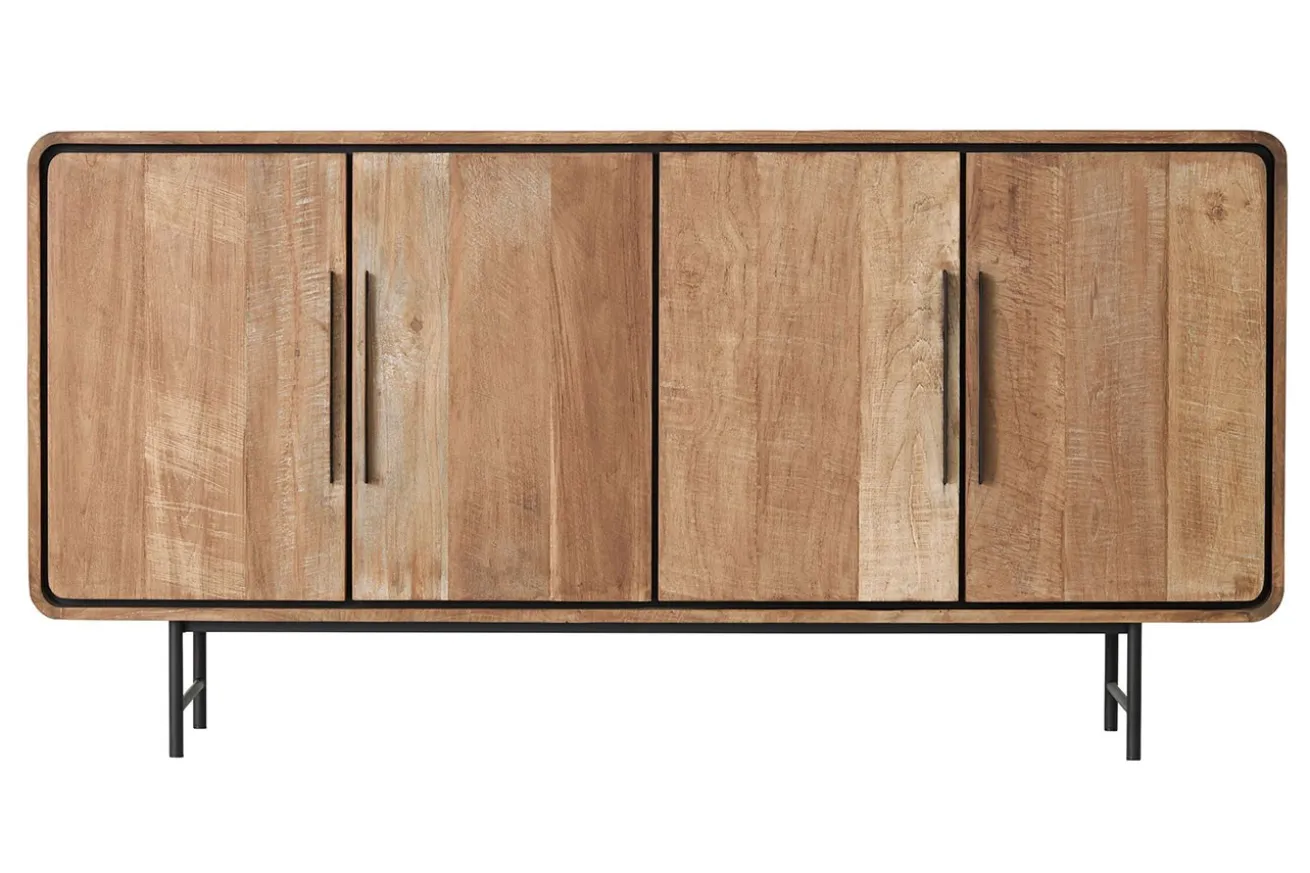 Die zwei schwarzen Metallfüße verleihen der Anrichte eine moderne Note und sorgen gleichzeitig für Stabilität und Langlebigkeit. Ihr minimalistisches Design passt perfekt zum zeitgemäßen Stil und rundet das Gesamtbild harmonisch ab.