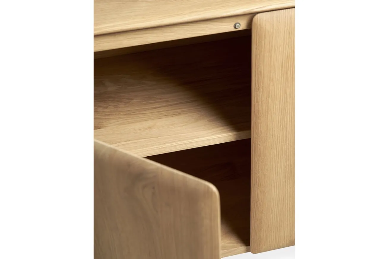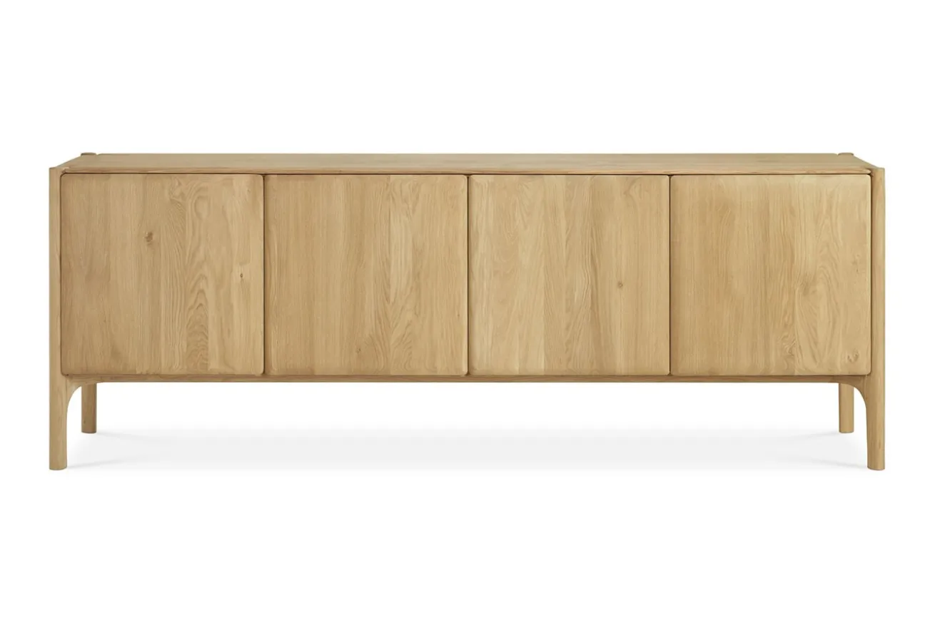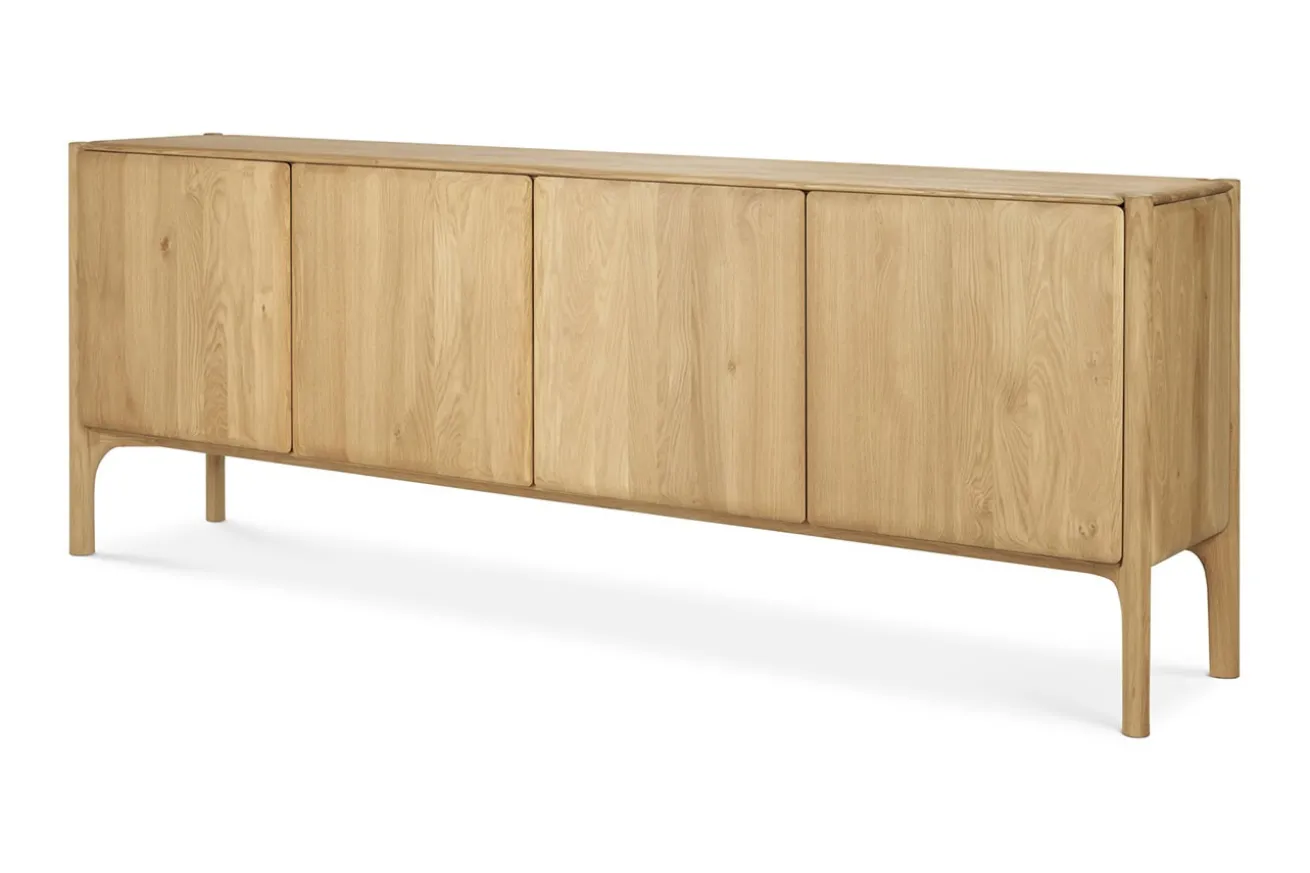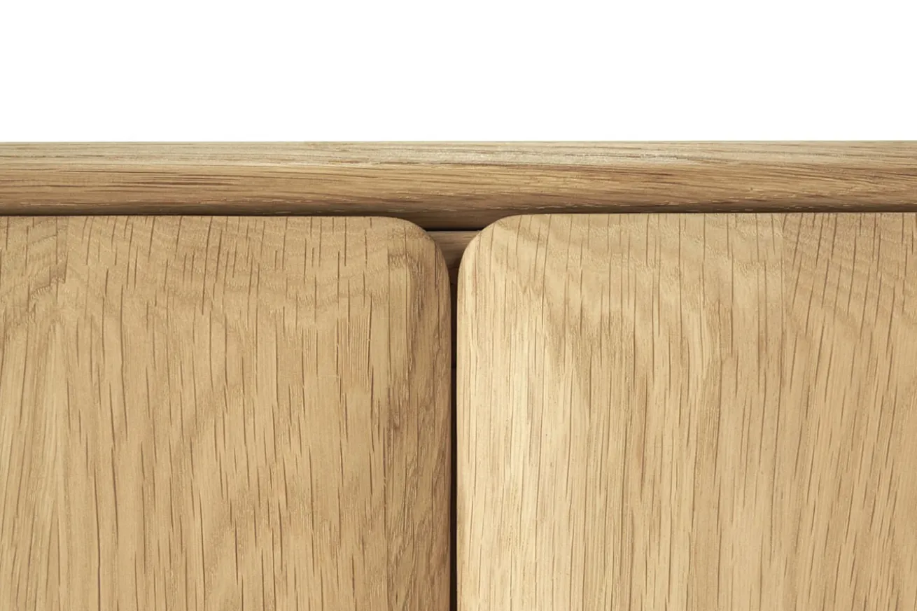Die Anrichte ist aus massivem Eichenholz gefertigt, was ihr nicht nur eine robuste Struktur verleiht, sondern auch eine zeitlose Ästhetik. Die Naturfarbe des Holzes zeigt die authentische Maserung und die Schönheit des Eichenholzes, während die lackierte Oberfläche für einen eleganten Glanz und zusätzliche Haltbarkeit sorgt.