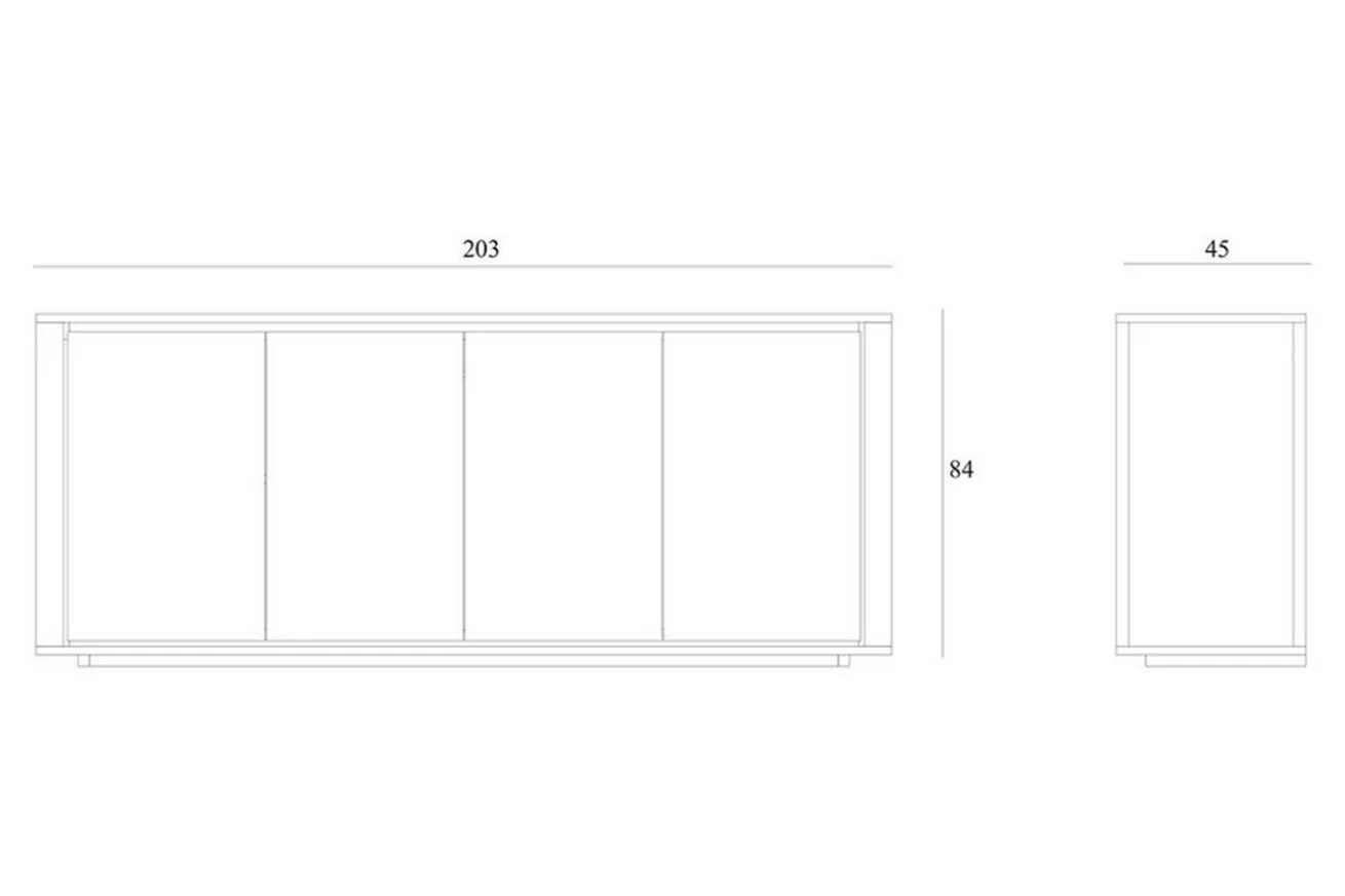 Die naturfarbene Design Anrichte Oak Shadow hat eine durch und durch glatte Oberfläche und sieht sehr modern aus. Die vier Türen lassen sich durch leichtes Drücken öffnen und wieder schließen, somit bleibt keine Gefahr, dass Sie am Griff hängenbleiben könnten. Das 203cm breite, 84cm hohe und 45cm tiefe Möbelstück mit natürlich warmer Farbe vereint Stauraum mit modernem Design, ein Traum eines jeden Ordnungsfreaks. Die Kommode aus Eichenholz bietet Ihnen Platz zum Verstauen und Dekorieren nach Ihren Wünschen.