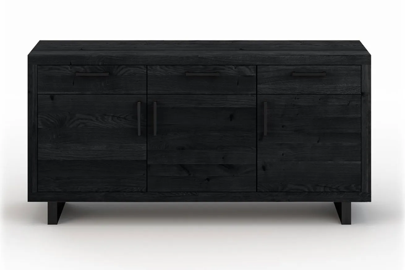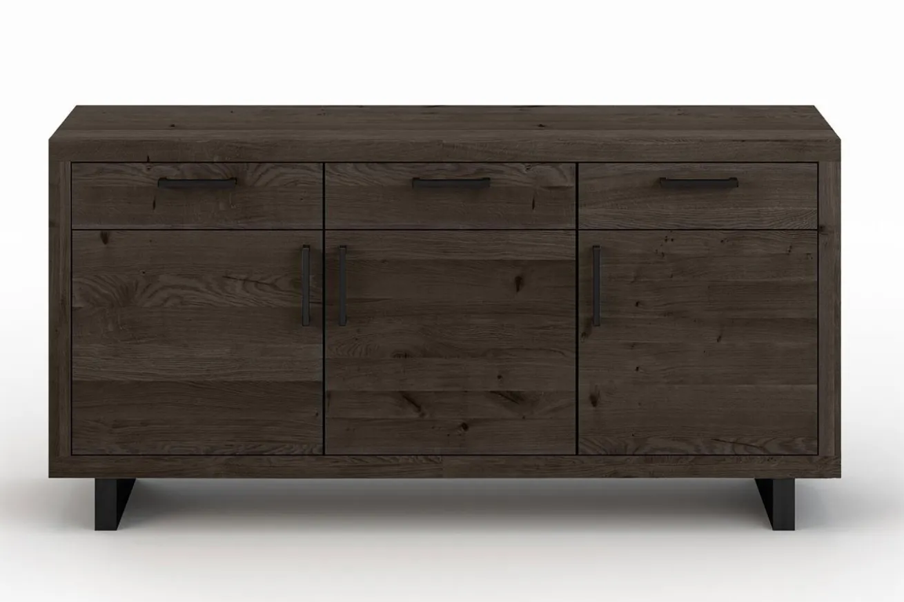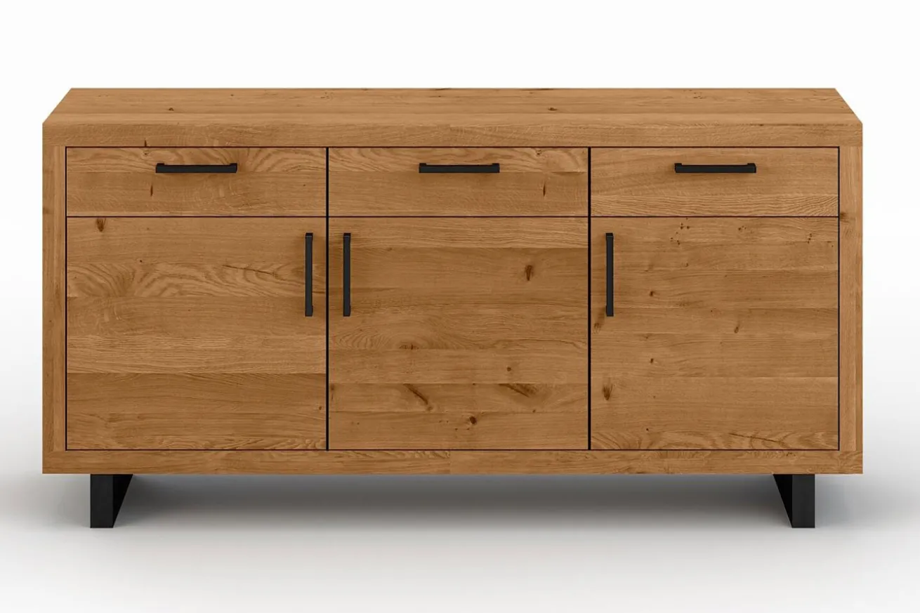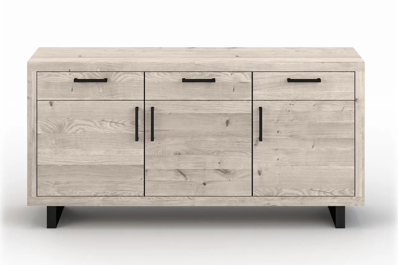 Anrichte, 100% Massivholz, rustikales Eichenholz, 3-türig, 3 Schubladen