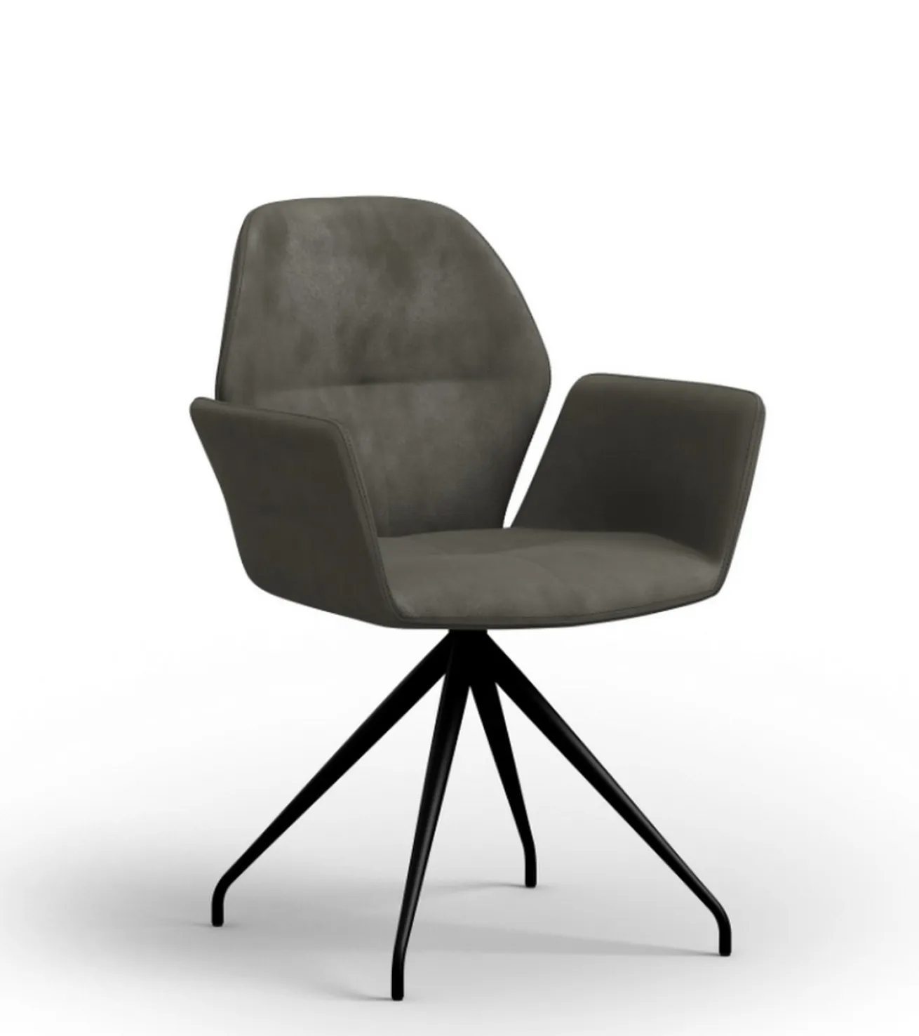 Dieser coole Esszimmerstuhl besteht nicht nur aus einem Korpus zum Sitzen, sondern hat auch Armlehnen. Das Produkt hat die Maße Breite 60cm, Höhe 87cm und Tiefe 58. Die Sitzfläche ist aus taupefarbenem graubraunen Leder. Hierbei handelt es sich um echtes Leder, einem glatten und leichter als andere Stoffe zu reinigenden Material. Der mögliche Esstischstuhl ist sehr modern. Der Korpus steht auf einem vier-füßigen Gestell aus schwarz pulverbeschichteten Metall. Das Produkt ist nicht nur ein schicker Esszimmerstuhl, sondern auch als Schreibtischstuhl einsetzbar.