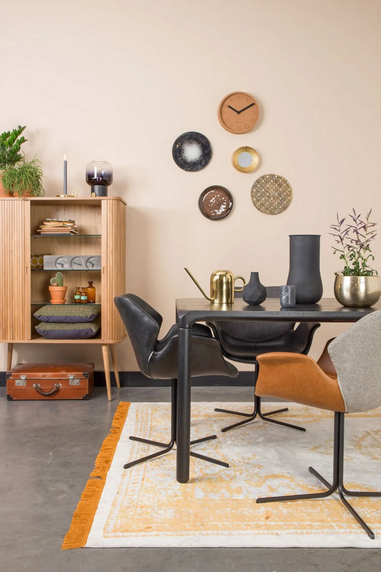 Ob als trendiger Esszimmerstuhl zum langen Holztisch oder als Bürostuhl- dieser moderne Armlehnstuhl ist vielseitig einsetzbar! Er hat die Maße Breite 67cm, Höhe 73cm und Tiefe 62cm. Der Korpus zum Sitzen besteht aus Kunststoff, näher aus Polyurethan, einem Stoff, der für Bezüge und Polsterungen verwendet wird, wie es auch hier der Fall ist. Durch das Metall Kreuzgestell wird diesem schwarzen Stuhl eine leichte und filigrane Optik verliehen. Somit können Sie den Stuhl nicht nur an Massivholztische stellen, sondern auch in sehr modernen Milieus an Glastische.
