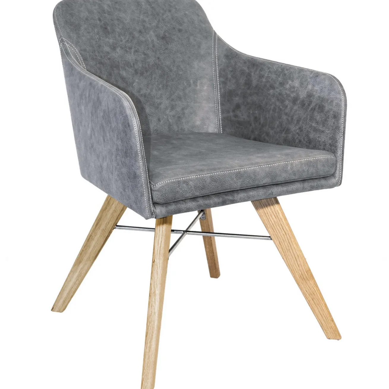 Das neue Modell YOUMA lädt zu ausgedehnten Abenden am Esstisch ein. Aber auch in Hotel-Lobbys und edlen Restaurants macht das trendige Sitzmöbel mit den markant ausgestellten Beinen eine gute Figur und trägt dazu bei, dass sich die Gäste rundum wohlfühlen. Der Stuhl hat die Maße Breite 56cm, Höhe 83cm und Tiefe 61cm. Der Korpus besteht aus grauem Leder mit Armlehnen, schreit also eigentlich direkt nach Gemütlichkeit. Getragen wird das Ganze von vier Beinen aus naturfarbenem Massivholz. Der Stuhl passt nicht nur zu modernen Einrichtungen mit Massivholztischen, sondern auch in Landhausmilieus.