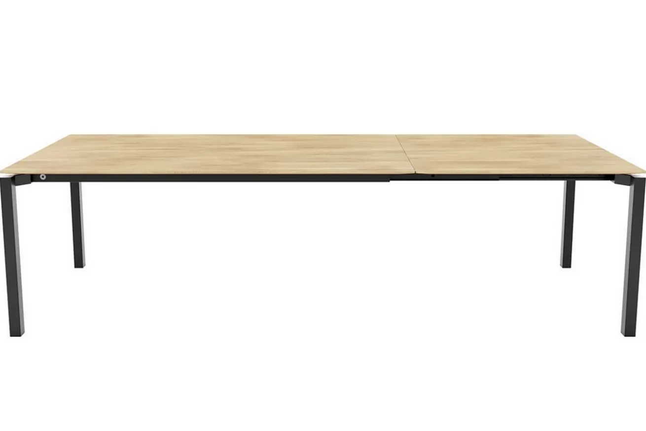 Dieser Tisch ist auch in einer Version mit Massivholzverlängerungen erhältlich, die eine Länge von bis zu 3 Metern ermöglichen.