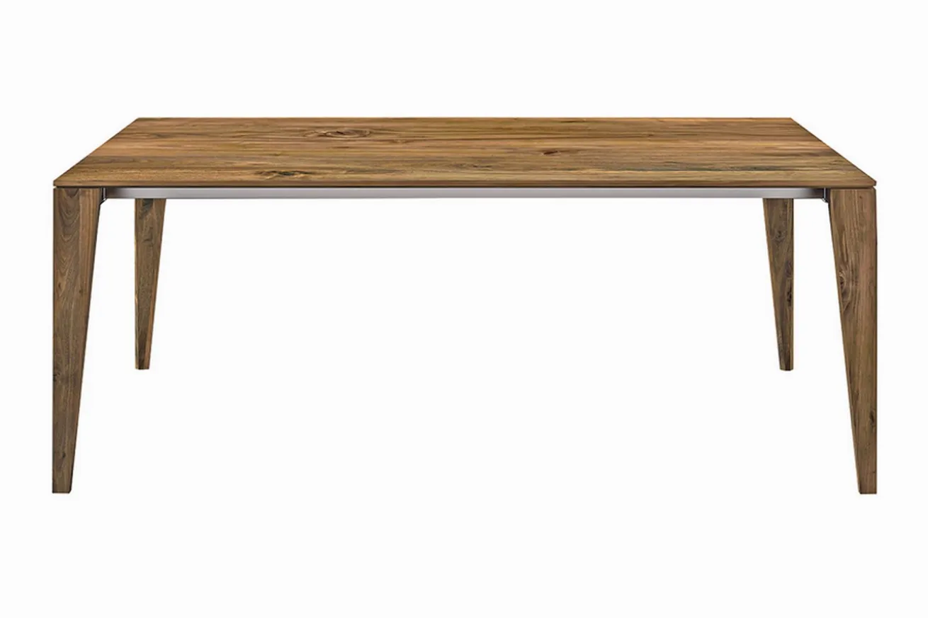 Dieses elegante Massivholzmöbel besteht komplett aus dem Massivholz Nuss. Da er ausziehbar ist, hat der Tisch eine Breite von 140-190cm, eine Tiefe von 100cm, eine Höhe von 76cm sowie eine Plattenstärke von 2cm. Das Produkt der Kernbuche, auch Wildbuche genannt, komm in ihrer Naturfarbe daher. Die Oberfläche wurde allerdings geölt und Äste sowie Risse mit schwarzer Pigmentfüllung gefüllt. Das Möbelstück wird von vier Füßen aus demselben Massivholz getragen, ebenfalls in seiner Naturfarbe, wodurch die Rustikalität des Nussholzes zum Vorschein kommt.