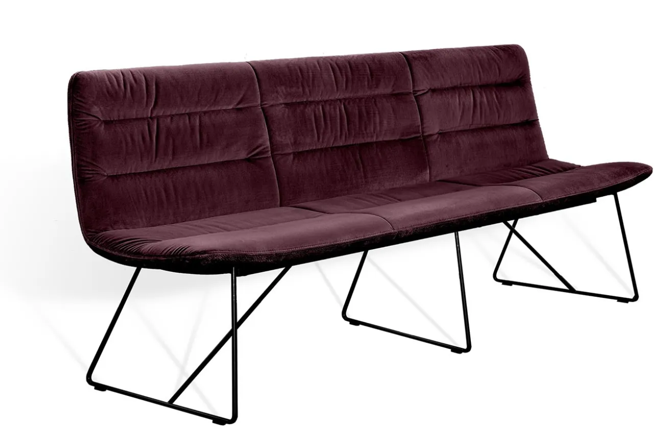 Erleben Sie unvergleichlichen Komfort und modernes Design mit dieser stilvollen 3,5-Sitzer-Bank, die jedem Raum eine einladende Note verleiht. Der Bezug aus hochwertigem violettem Stoff strahlt Wärme und Gemütlichkeit aus und fügt sich nahtlos in verschiedenste Einrichtungsstile ein. Die sanfte Textur des Stoffes lädt zum Entspannen ein und schafft einen perfekten Rückzugsort für gesellige Abende mit Freunden oder ruhige Momente der Entspannung.