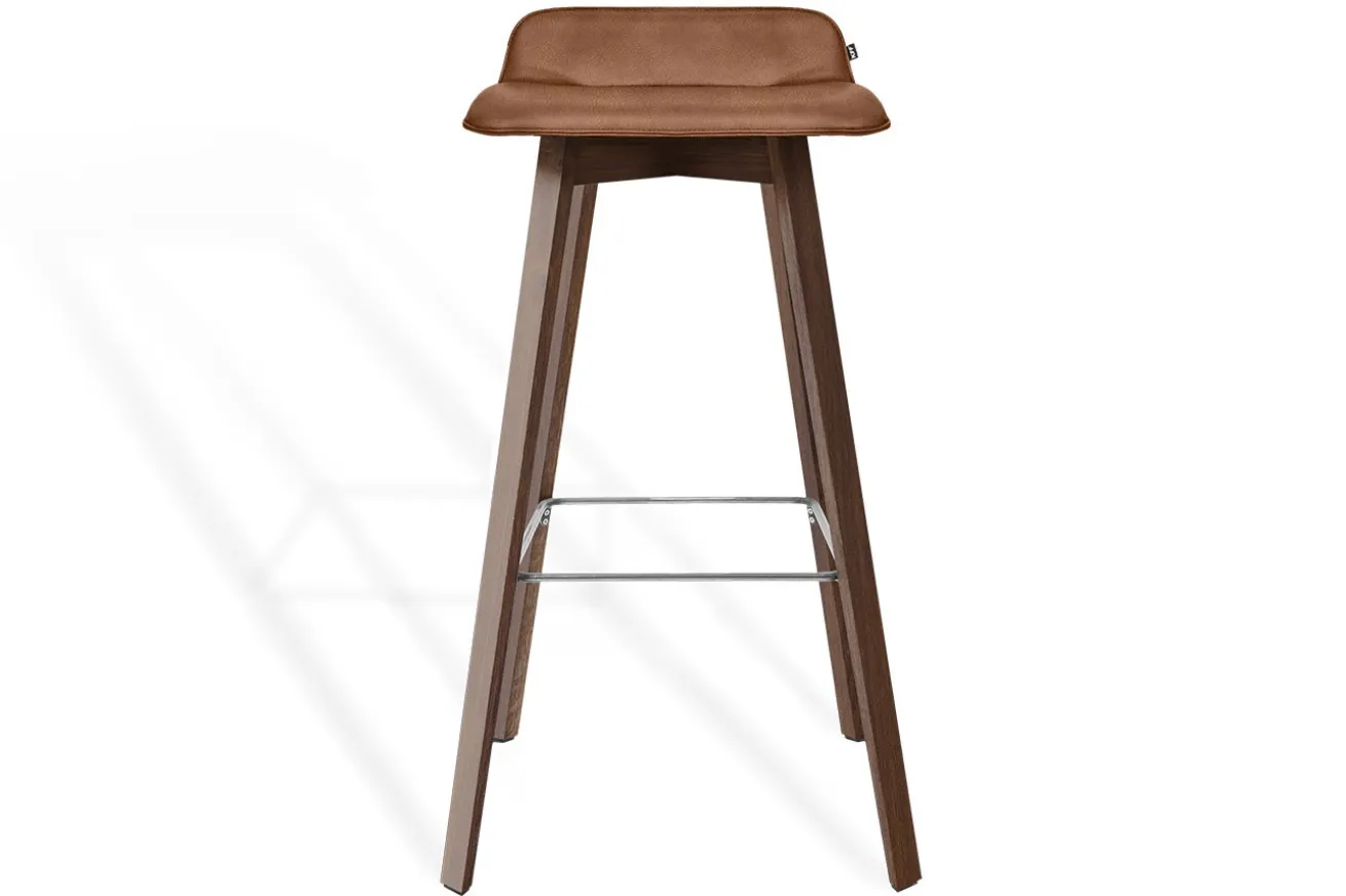 Dank der vier stabilen Beine aus massivem Nussholz steht der Hocker sicher, während die metallenen Fußstützen für zusätzlichen Komfort sorgen. Ob in der Küche, an der Hausbar oder in einem trendigen Café – dieser Barhocker überzeugt sowohl optisch als auch funktional auf ganzer Linie.