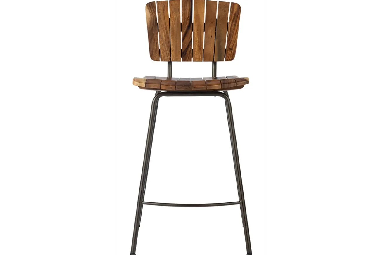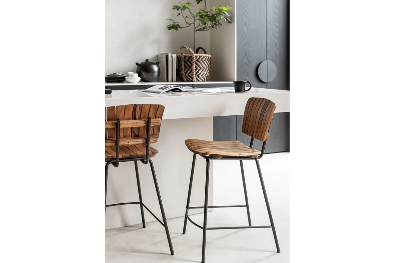 Willkommen in der Welt der Eleganz und des Komforts mit unserem exquisiten Barstuhl aus naturfarbenem Suarholz. Dieser einzigartige Stuhl vereint die natürliche Schönheit von Suarholz mit einer geschmackvoll lackierten Oberfläche und einem robusten schwarzen Metallgestell, das mit einer praktischen Fußablage ausgestattet ist.