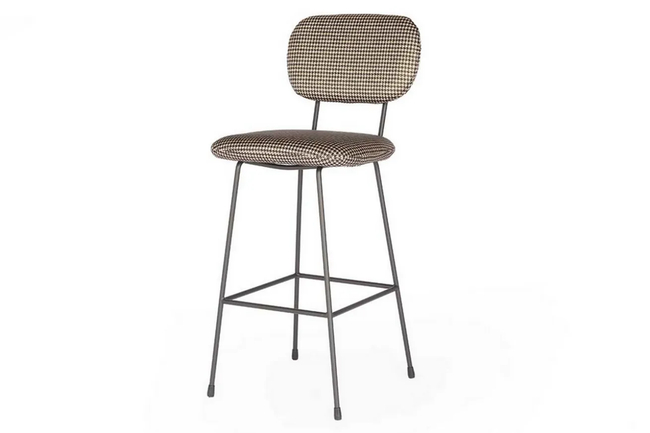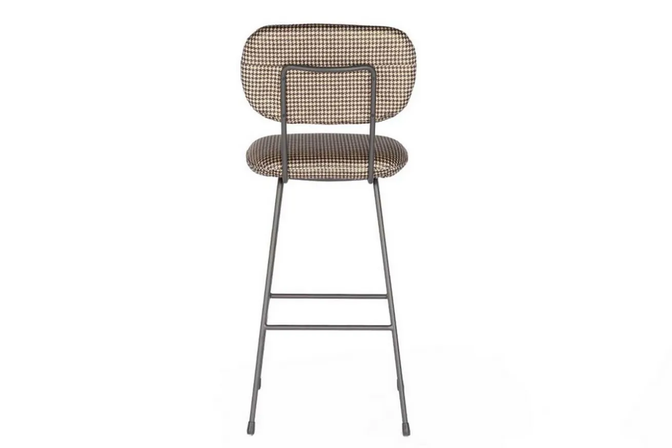 Der Barhocker im neuen Look wirkt durch die Trennung von Sitzfläche und Rückenlehne optisch sehr viel leichter als die klassischen Modelle. Er hat die Maße Breite 48cm, Höhe 110cm und Tiefe 58cm. Drei Gründe, die für dieses Produkt sprechen, sind einmal die originelle Verbindung aus Stoff und Stahl, dann der außergewöhnliche Look und zu guter Letzt der schicke Bezug. Sitz- und Lehnfläche bestehen nämlich aus Stoff in kariertem schwarz und weißen Hahnentrittmuster, die auf einem Gestell aus schwarzem Stahlgestell befestigt sind. Die dunkle Farbe des Stahls in Kombination mit der hellen Stoffarbe ist dieser Barstuhl ein außergewöhnliches Objekt, das aber in eben dieser Kombination einfach nur klasse aussieht! Der Stuhl eignet sich somit nicht nur in modernen Milieus, sondern auch in klassisch-rustikalen Einrichtungen mit dunklen Massivholzmöbeln.