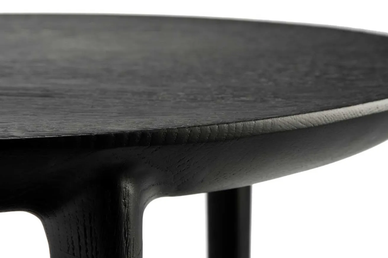 Bei diesem Beistelltisch können Sie mit moderner Dekoration und wohnlichen Accessoires, die zum Skandi-Stil passen, punkten. Bok, der einen Durchmesser von 43cm und eine Höhe von 50cm hat, überzeugt den Betrachter durch sein schlichtes, modernes Design. Er strahlt in einem schwarzen Farbton, mit dem das Holz lackiert wurde. Das Highlight des Tischchens ist seine gebürstete und somit raue Oberfläche. Gleich zwei Ablageflächen eignen sich für Ihren dekorativen Sinn.
