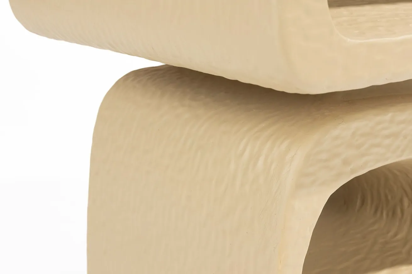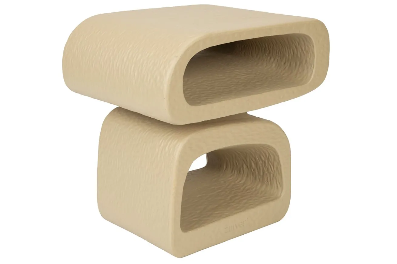 Dieser Tisch besteht aus Harz und ist in einem erdigen Beigeton gehalten. Ein echter Hingucker sowohl drinnen als auch draußen – aber Achtung: Eddy mag keinen Regen. Also bring ihn nach einem gemütlichen Abend im Freien wieder ins Haus.