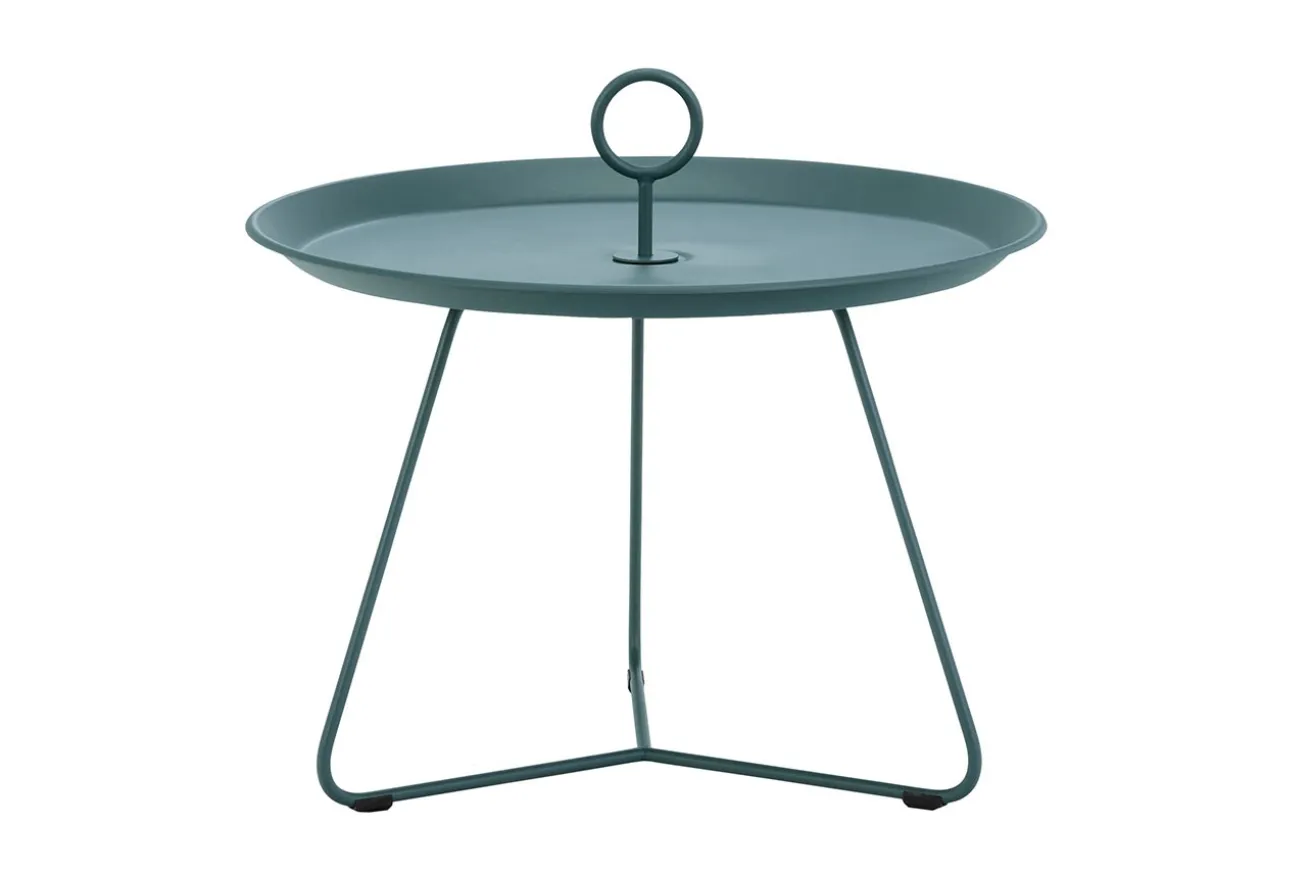 Wie eine Etagére sieht der Beisteller, der auch drinnen als auch Nachttisch dienen kann, aus. Es spricht auch wirklich nichts dagegen, (un)gesunde Snacks auf Porzellantellern hinzustellen und nach ihnen zu greifen, Wenn Sie in Ihr neues Buch vertieft sind. Immerhin bietet Eyelet mit einem Durchmesser von 60cm und einer Höhe von 41cm genügend Platz dafür. Der grün pulverbeschichtete Beistelltisch mit Griff in der Mitte lässt sich aber auch mit den passenden Accessoires dekorieren. Ob Sie das Möbelstück nun drinnen oder draußen verwenden, liegt ganz an Ihnen. Eins sollten Sie jedoch wissen: der integrierte Wasserablauf sorgt dafür, dass Regenwasser problemlos durchlaufen kann.
