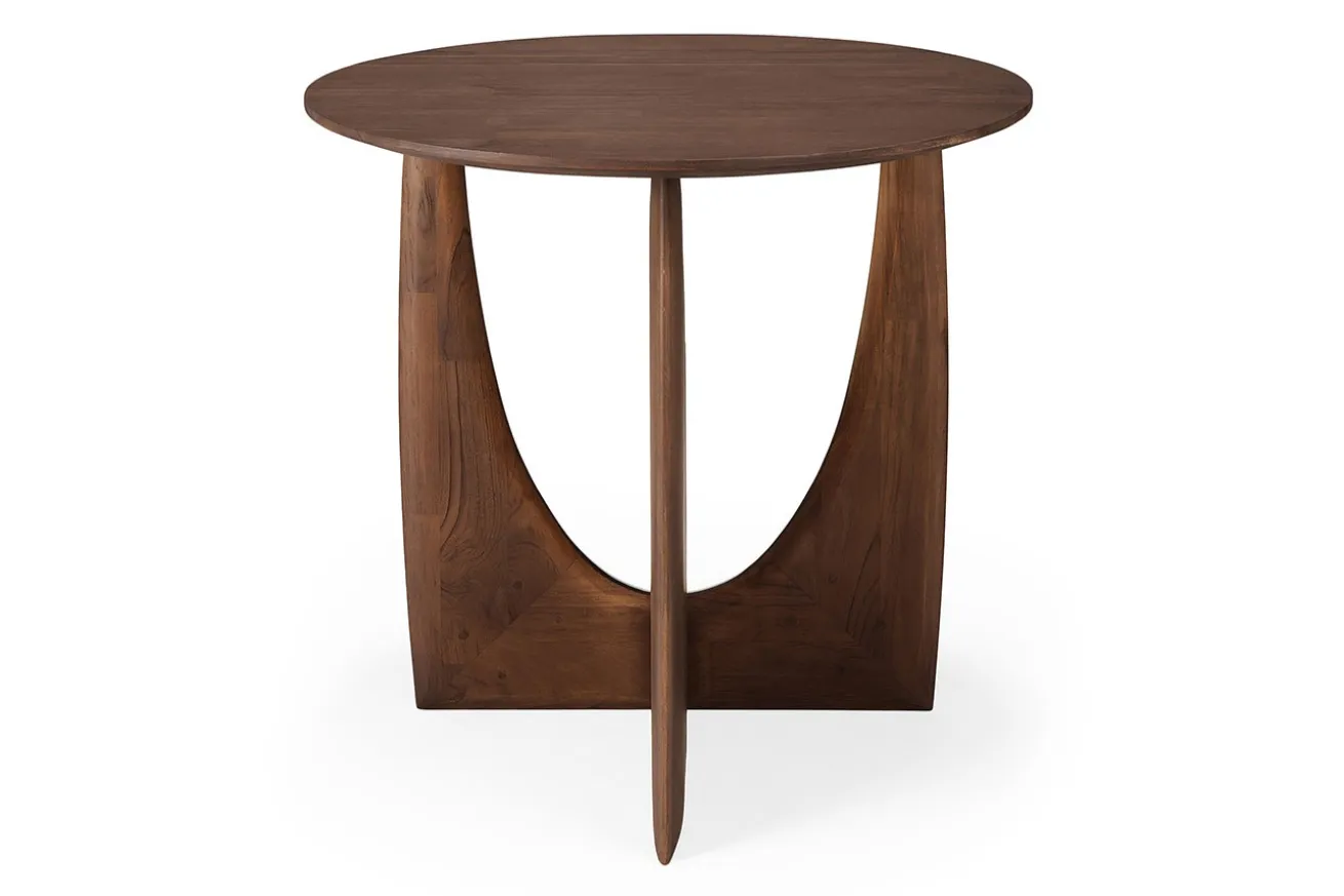 Dieser naturfarbene Beisteller aus massivem Teak überzeugt durch seine natürliche Farbe mit gleichmäßiger Maserung. Mit einem Durchmesser von 51cm und einer Höhe von 50cm eignet er sich hervorragend an freie Stellen in Ihrem Zuhause. Ob er nun eine Vase mit einem farblich passenden Bouquet trägt, oder Sie aber Ihren Kaffee neben der Couch darauf abstellen möchten, ist ganz Ihnen überlassen. Die lackierte Oberfläche schützt Geometric vor zusätzlichen Schäden. Sein Name steht stellvertretend für das geometrisch gefertigte Bein, das ebenfalls aus Holz ist. So entsteht ein moderner Beisteller, der vielseitige Verwendung erfährt.