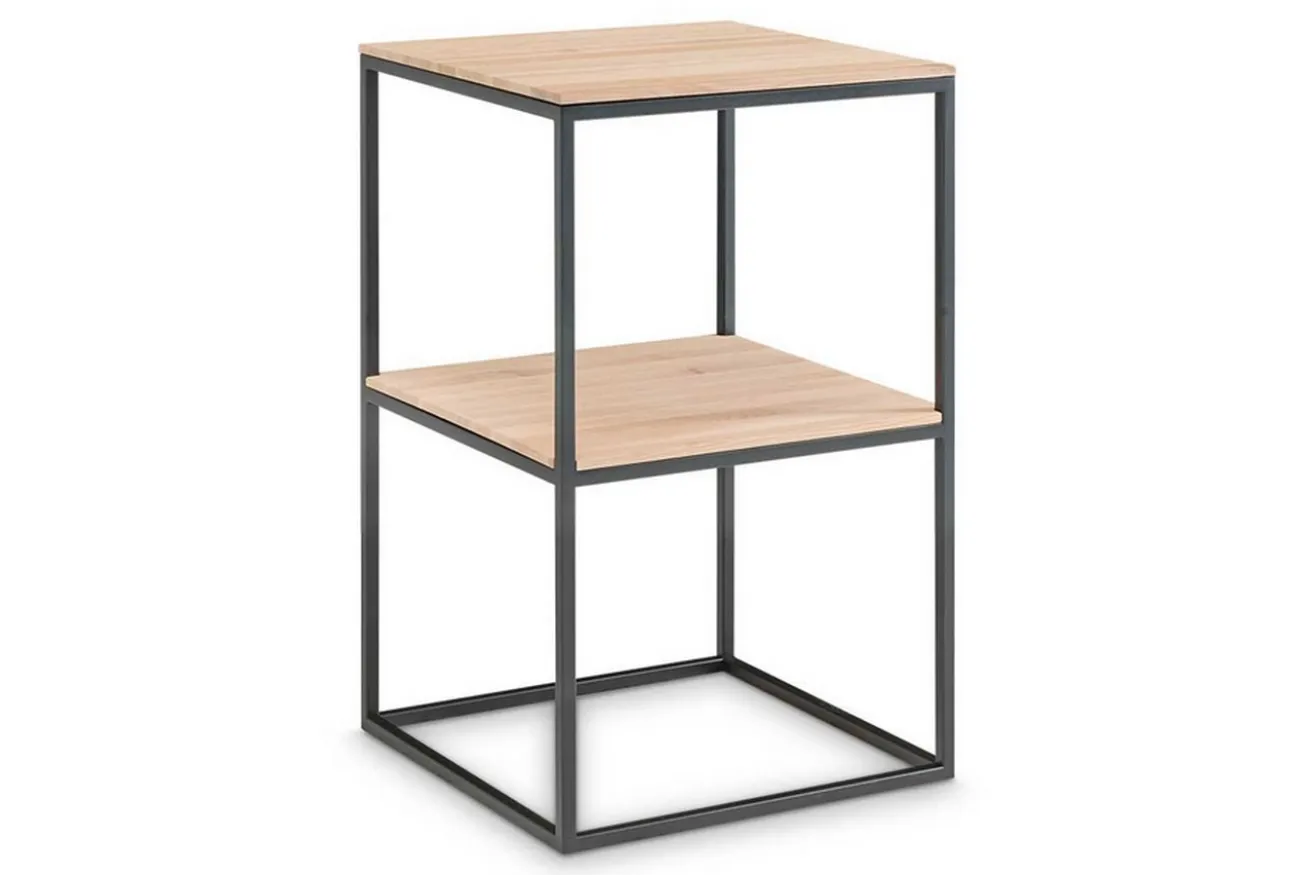 Das im Hausbau sehr begehrte Holz wurde hier als quadratische Platte verwendet und mit einem mattschwarzen Metallgestell verbunden, um dieses moderne Tischchen zu erhalten. Mit den Maßen Breite & Tiefe = 45cm ist er nicht nur klein, hübsch, sondern auch praktisch. Die geölte Oberfläche bietet Platz für jegliche Dekorationswünsche, sei es im Flur für das Telefon, im Wohnzimmer für mehrere Vasen oder Pflanzen oder aber im Schlafzimmer als Nachttisch, Ihren Ideen und Verwendungszwecken sind da keine Grenzen gesetzt.