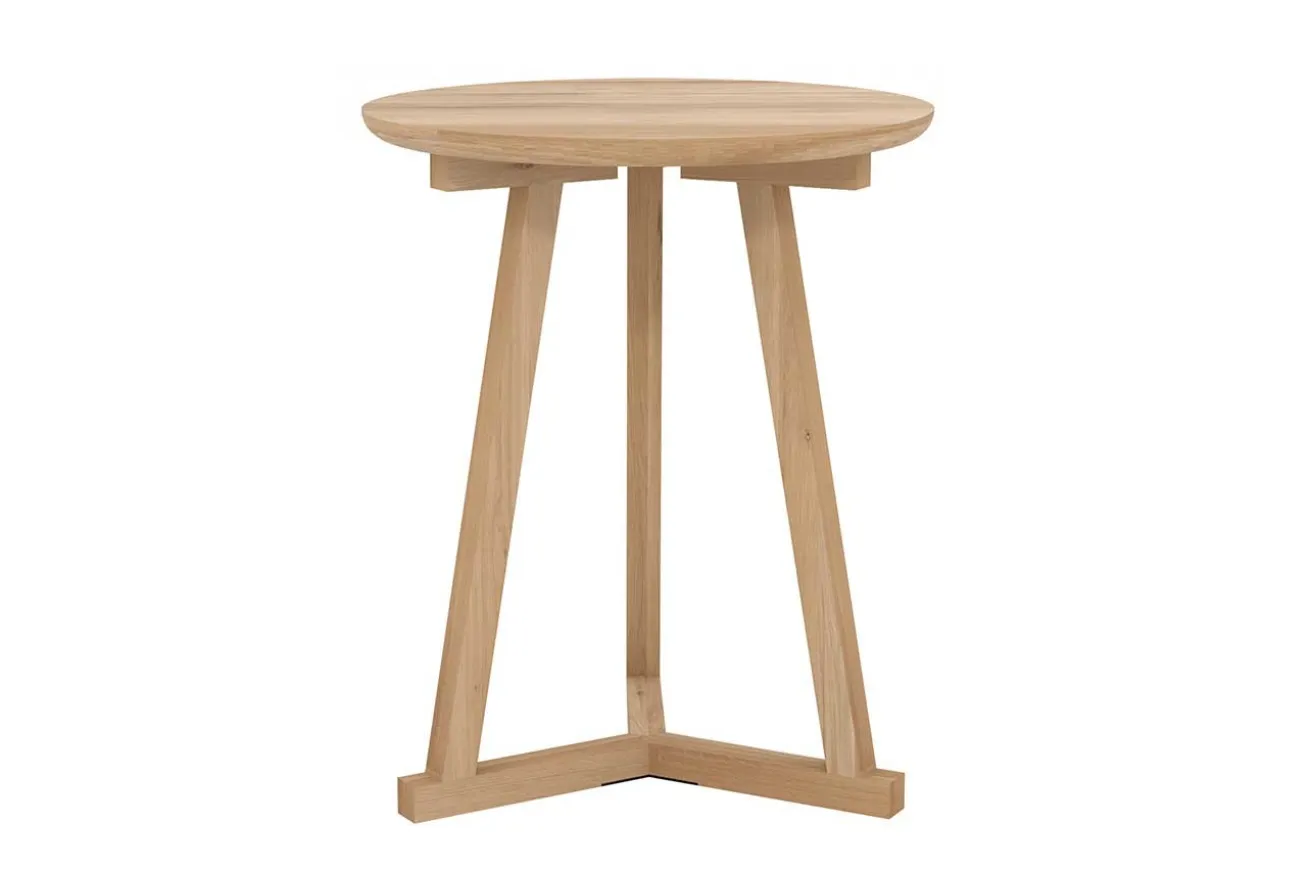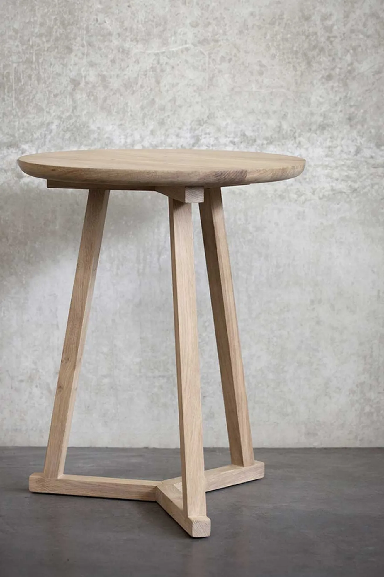 Wir haben schon viele Couchtische gesehen, egal ob rund oder eckig, aber noch nie hatten wir einen, der komplett aus Holz besteht. Schauen Sie sich dieses Meisterstück an! Das runde Massivholzprodukt mit einem Durchmesser von 46cm sowie einer Höhe von 56cm ist aus Eiche, kommt in seiner Naturfarbe daher und die Oberfläche wurde lackiert. Die Besonderheit dieses Modells ist, dass dieser Tisch drei Beine hat, die in ihrer Anordnung an ein Tripod erinnern. Perfekt eignet sich das Massivholzprodukt als Wohnzimmertisch in Landhaus- oder Shabby Chic-Milieus.