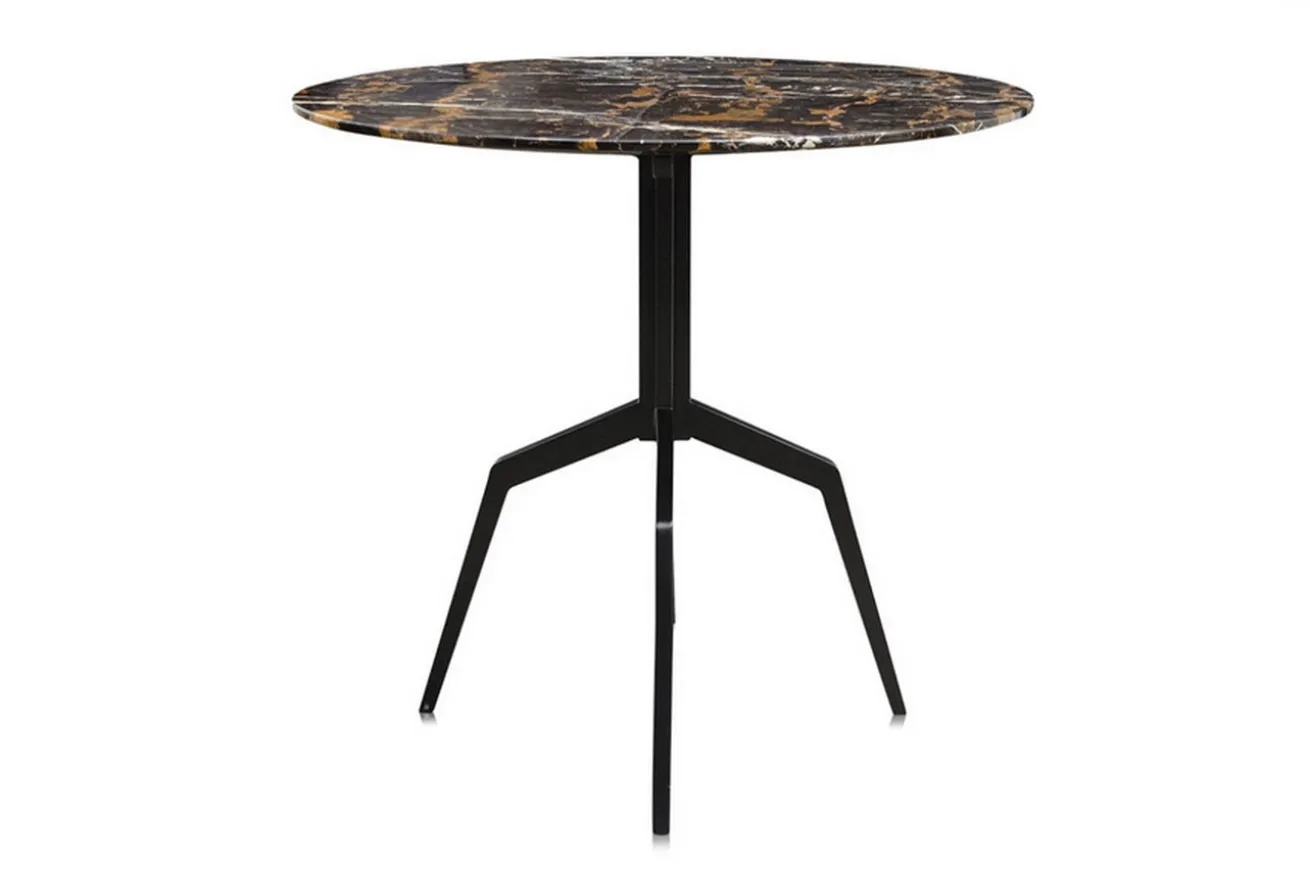 Dieser extravangante Esstisch namens „Razor“ mit seiner edlen Marmorplatte und schwarzem Gestell aus Stahl bringt Glanz in Ihr Zuhause. Die hochwertige Verarbeitung spricht für sich. Der Tisch für geschmackvoll eingerichtete Esszimmer hat einen Durchmesser von 80cm, eine Höhe von 76cm sowie eine Plattenstärke von 1,5cm. Die Spitzen sind aus Naturstein (Marmor), die in Farbe und Struktur variieren können. Natürliche Wunden und Risse sind aufgefüllt. Diese Eigenschaften sind dem Marmor innewohnend und sind nicht als Defekt anzusehen. Die Platte des Esszimmertisches ist schwarz-braun und verleiht dem Raum, in dem sie zukünftig steht, einen eleganten Charakter. Getragen wird sie von einem schwarz pulverbeschichteten und gebürsteten Stahlgestell, dem vier Füße entspringen.