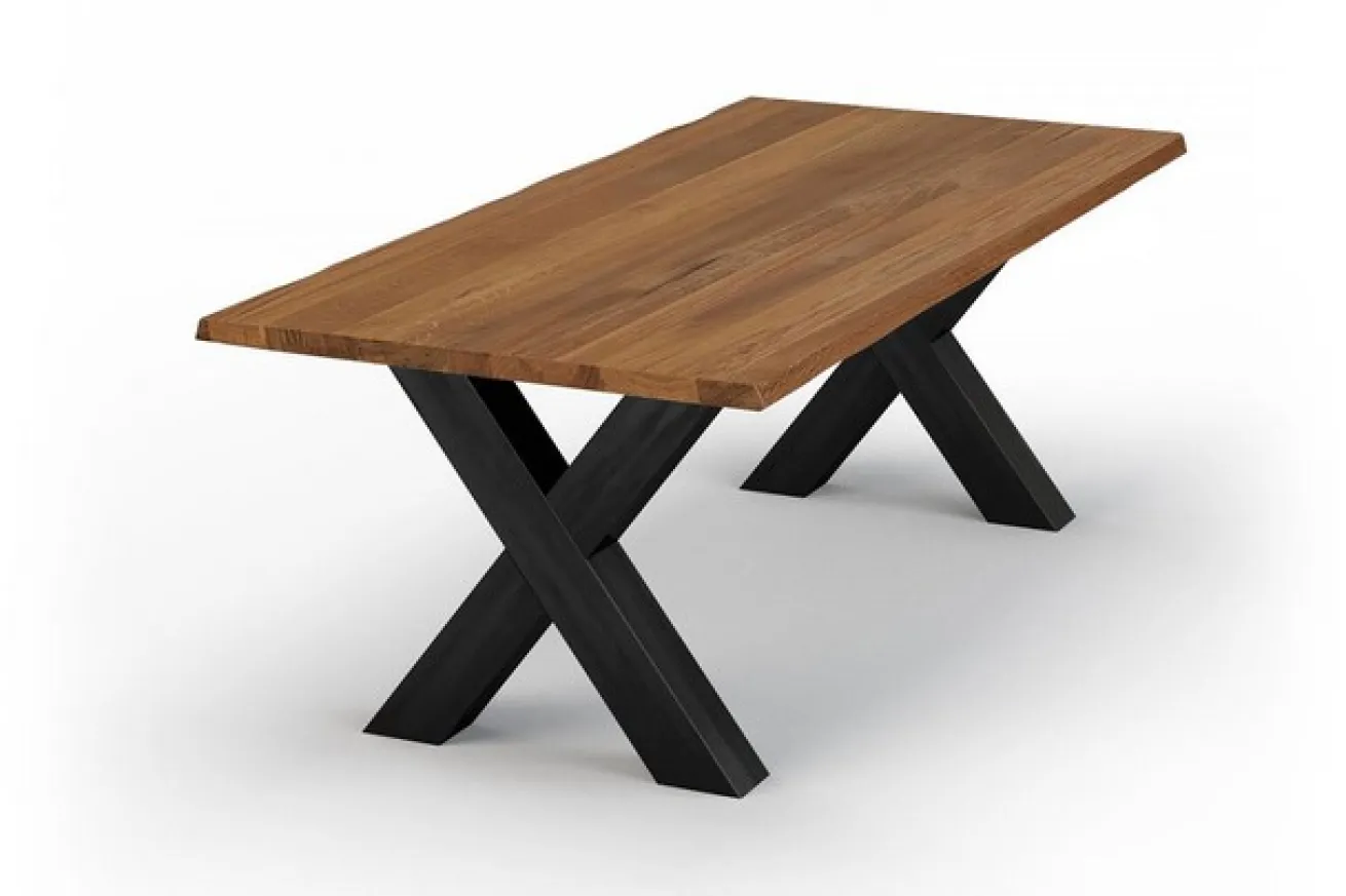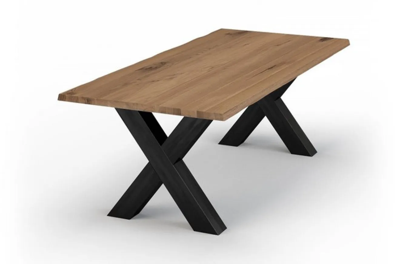 Wer gerne Moderne mit Außergewöhnlichem mischt, ist bei uns genau richtig. Oder besser gesagt, bei Bristol, unserem Esstisch aus Holz für Groß und Klein! Dieses liebevoll gefertigte Möbelstück für Küche und Speisezimmer erstrahlt in seiner vollen Pracht. Die Tischplatte, massives Eichenholz mit einer Öl-Wachs-Schicht, die jene warme Farbe des Naturholzes sowie Äste und Risse schützt, zeigt sich in seiner besten Form, der natürlichen Kante. Gerade kann jeder, warum nicht einmal ausgefallen? Fast genauso, wie die tragenden Füße aus Stahl in schwarzer X-Form. Von Weitem erinnert Bristol vielleicht an einen klappbaren Picknicktisch, den man auf der Wiese aufstellt, aber betrachtet ihn man näher, weiß man, dass es sich um einen massiven und mehr als nur stabilen, klassischen Esstisch handelt, der Ihnen jahrelang dient und auf dem man das ein oder andere Festmahl ausrichten kann.