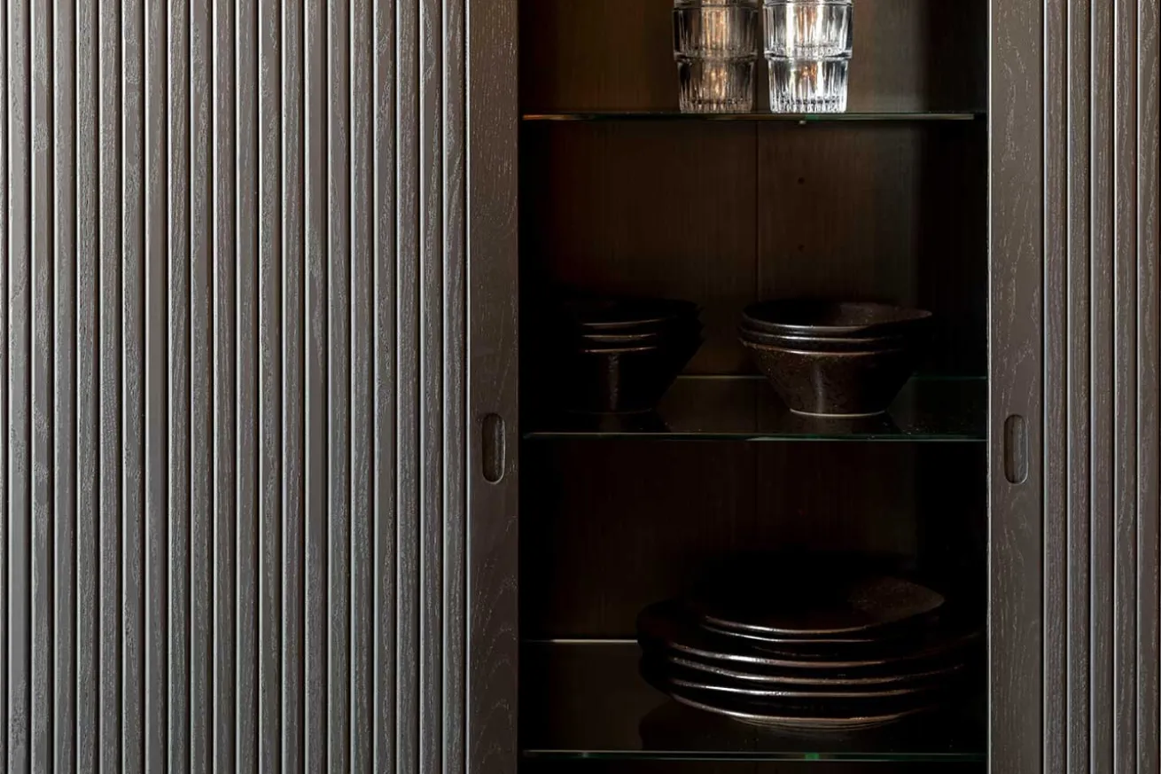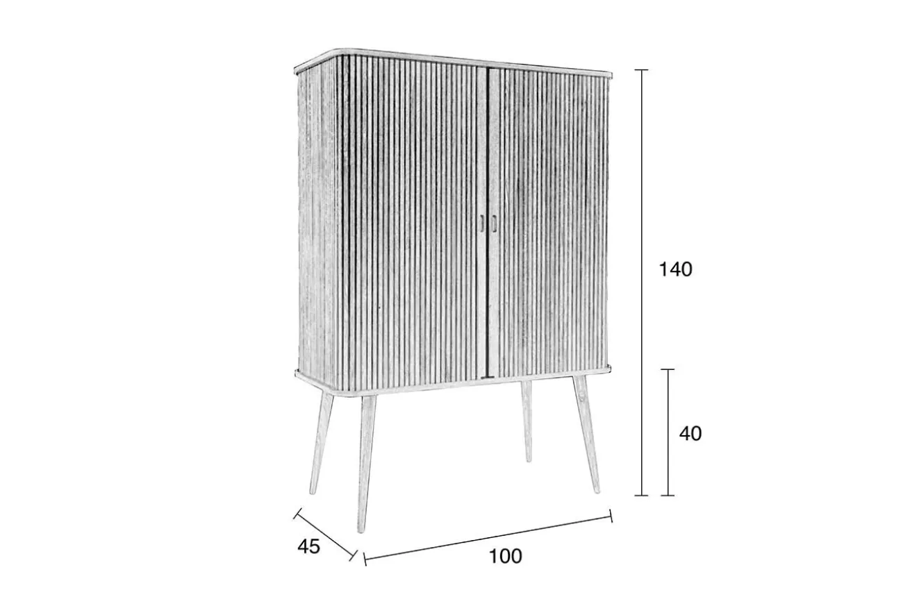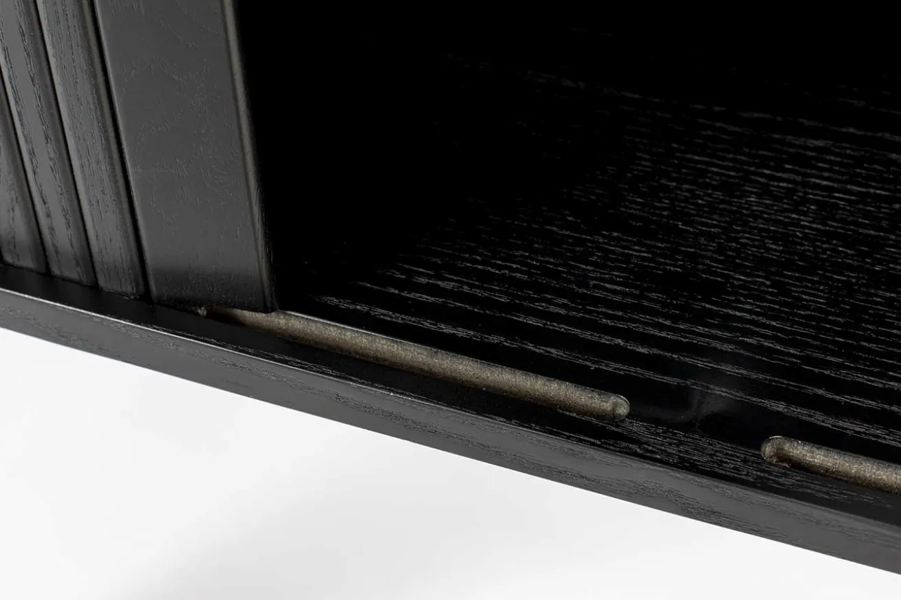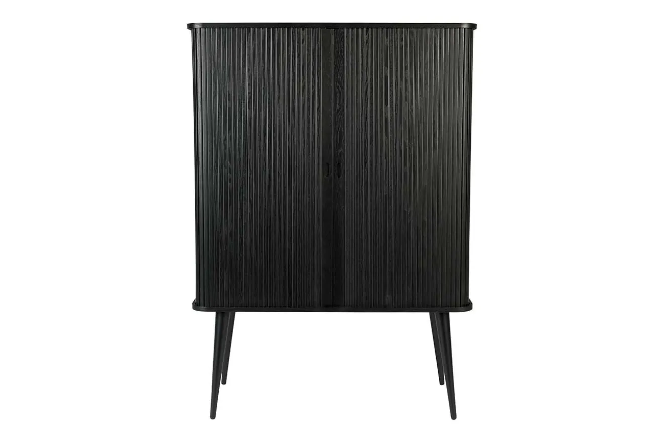 Das Buffet im Retro Stil ist aus Esche Holz gefertigt. Es hat eine Höhe von 140cm, eine Breite von 100cm und eine Tiefe von 45cm. Barbara steht auf vier unten schmaler werdenden, runden Füßen. Die praktischen Schiebetüren, welche im Korpus verschwinden, machen den Schrank ideal für kleine Wohnungen oder Zimmer. Die hochwertige Verarbeitung wird ducrh die transparenten Einlegeböden komplettiert. Das Küchenbuffet, das schwarz lackiert wurde, überzeugt durch seine schöne Optik. Ein robuster Küchenschrank aus Eschenholz, für den jeder Begeisterung empfindet. Für alle Liebhaber des angesagten Retro Looks ein absolutes Einrichtungs Muss!
