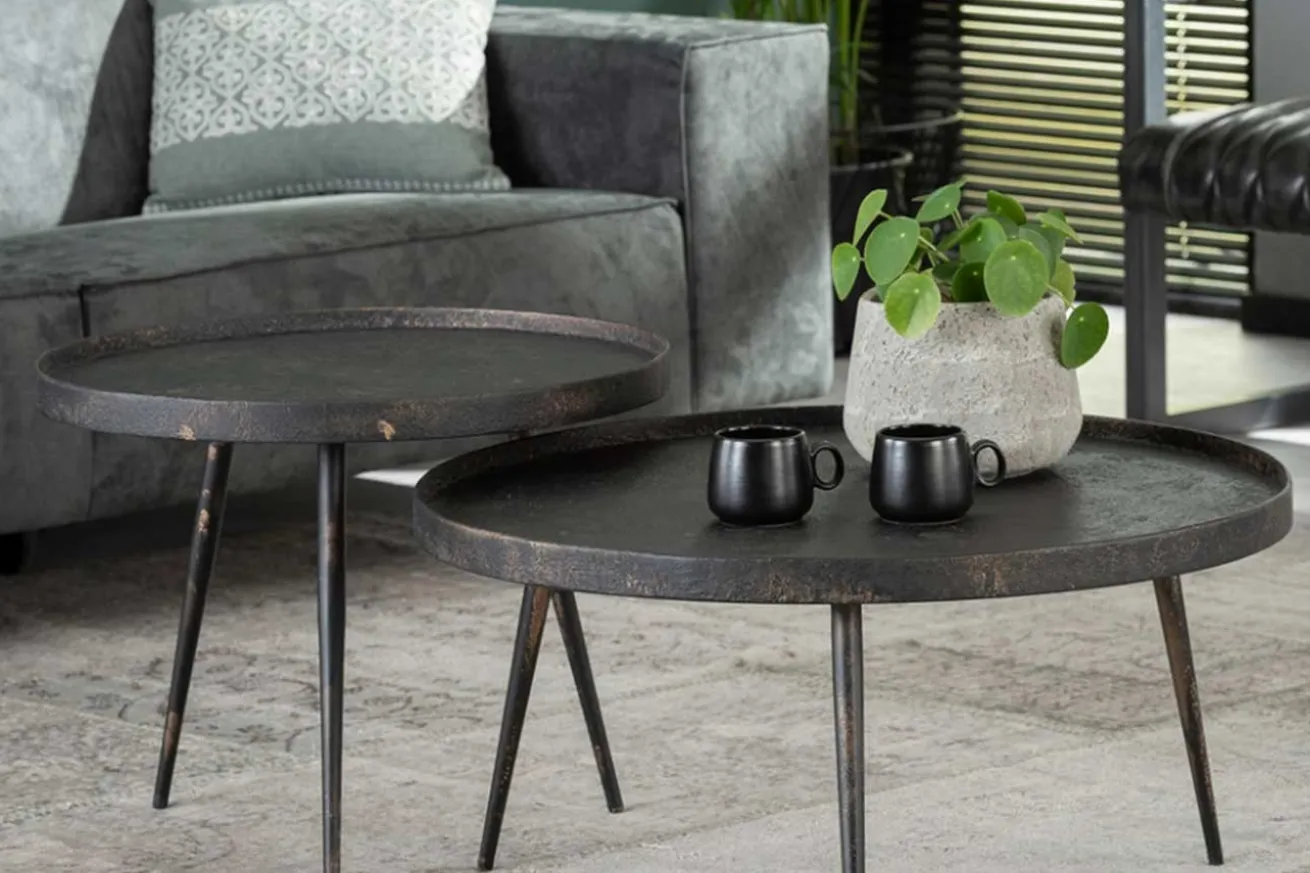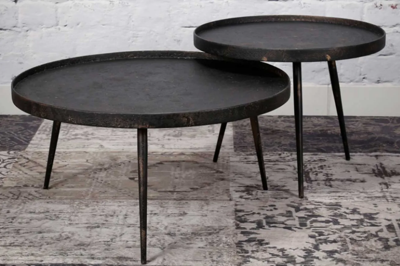 Dieses zeitlose Tischset aus schwarzem Stahl ist genau das Richtige für Ihre moderne Einrichtung. Egal, ob Sie nun mehr Besuch bekommen, oder alleine zu einem Glas Wein greifen, die beiden Tische stehen niemals im Weg, denn: Dank der unterschiedlichen Größen der beiden Produkte lassen sie sich problemlos untereinanderschieben, wodurch nicht nur ein 3D-Look, sondern auch noch mehr Platz entsteht. Und wenn Sie das stören sollte, können Sie auch ganz simpel einen der Tische als nächtliche Ablage ins Gästezimmer verfrachten. Aus dem Auge – aus dem Sinn! So war das doch, oder? Aber wir sind uns sicher, dass sie die beiden Teile nicht ohne einander in Ihr Wohnzimmer stellen. Die runden Tischplatten bestehen jeweils aus drei Tischbeinen und haben einige rostige Stahlstellen, die jedoch so gewollt sind und dem Used-Look einen letzten Feinschliff geben.
