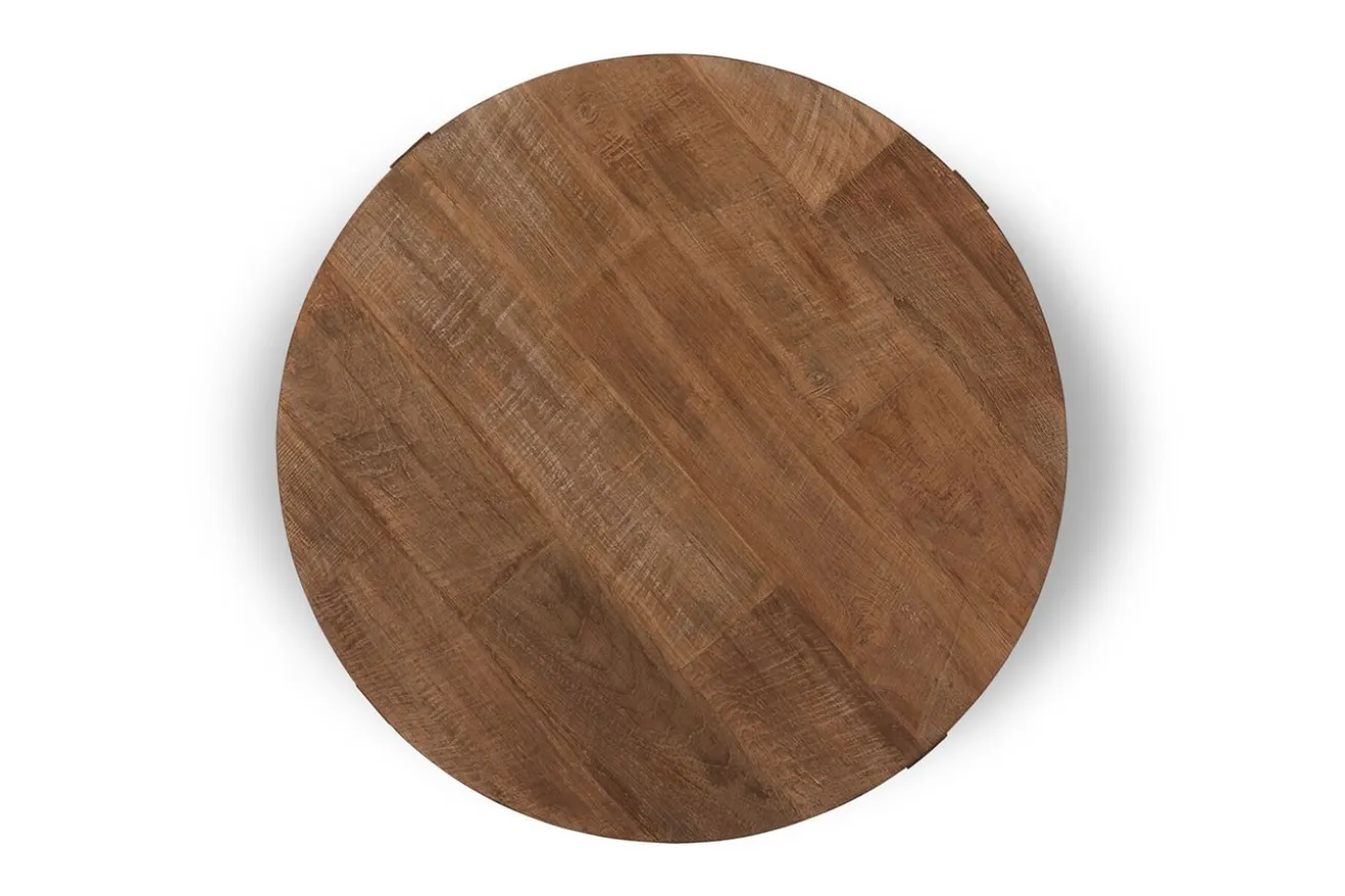 Die Tischplatte dieses faszinierenden Couchtisches erzählt von Geschichte und Natürlichkeit. Hergestellt aus sorgfältig ausgewähltem, recyceltem Teakholz, bewahrt sie die charakteristische Maserung und die warmen Farbtöne des Holzes. Jedes Detail trägt zur Einzigartigkeit des Tisches bei und verleiht ihm einen unverkennbaren Charakter.