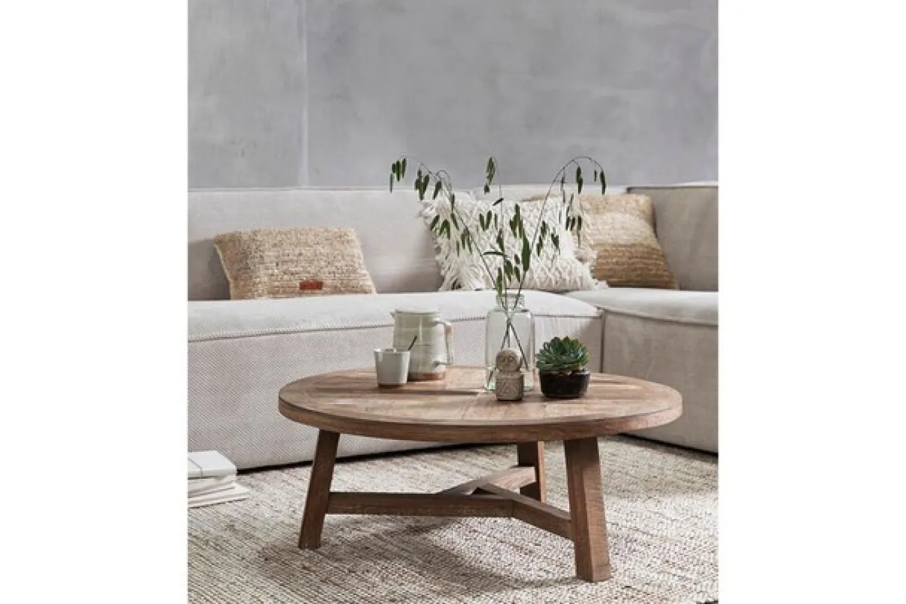 Verleihen Sie Ihrem Wohnzimmer eine subtile Mischung aus mediterraner Eleganz und natürlicher Schönheit – mit unserem Couchtisch aus recyceltem Teakholz in Naturfarbe. Dieser Couchtisch, der komplett in Naturfarbe gehalten ist, bringt den Charme der Küstenregionen und zeitloses Design auf harmonische Weise zusammen.