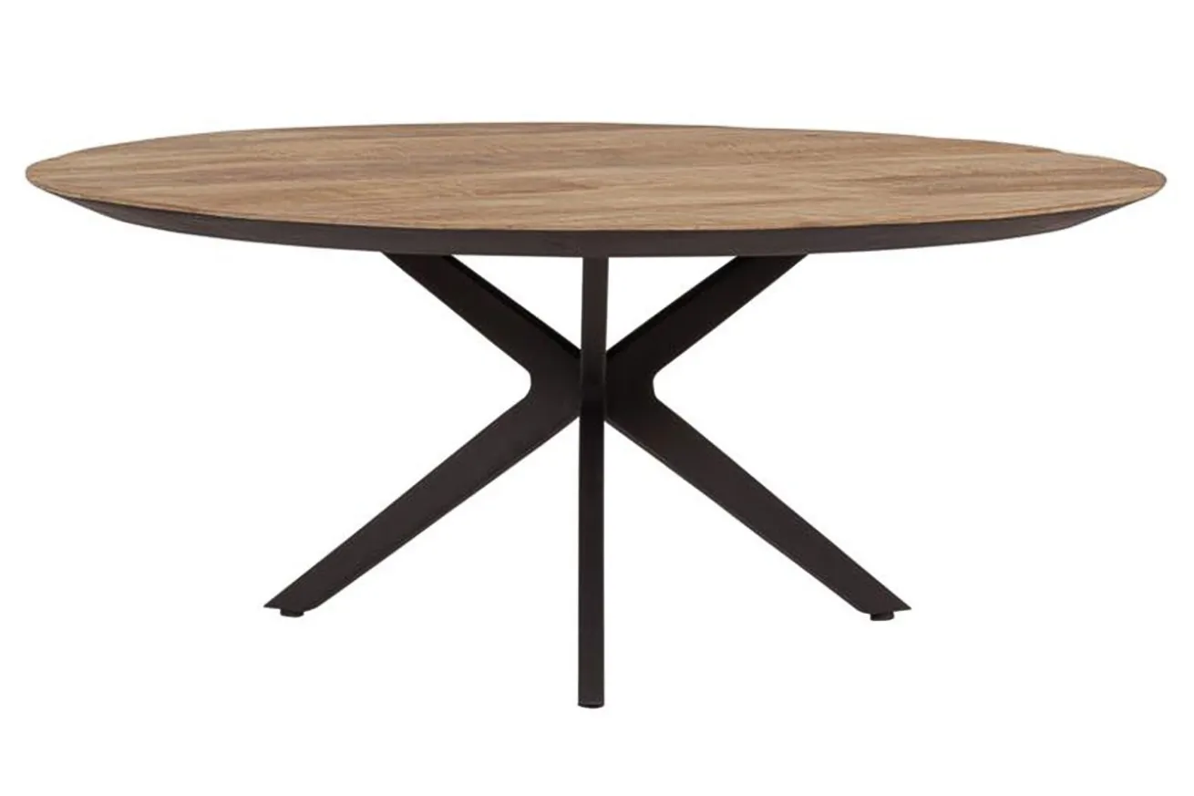 Das schwarze Metallgestell, schlank und doch robust, bietet nicht nur eine stabile Unterstützung, sondern verleiht dem Tisch auch eine zeitgenössische Ästhetik. Die klaren Linien und das moderne Design des Gestells setzen einen Kontrast zur organischen Holzplatte und schaffen eine harmonische Balance zwischen Rustikalität und Eleganz. Das Metallgestell fügt dem Tisch einen Hauch von urbaner Raffinesse hinzu und gewährleistet gleichzeitig eine zuverlässige Haltbarkeit.