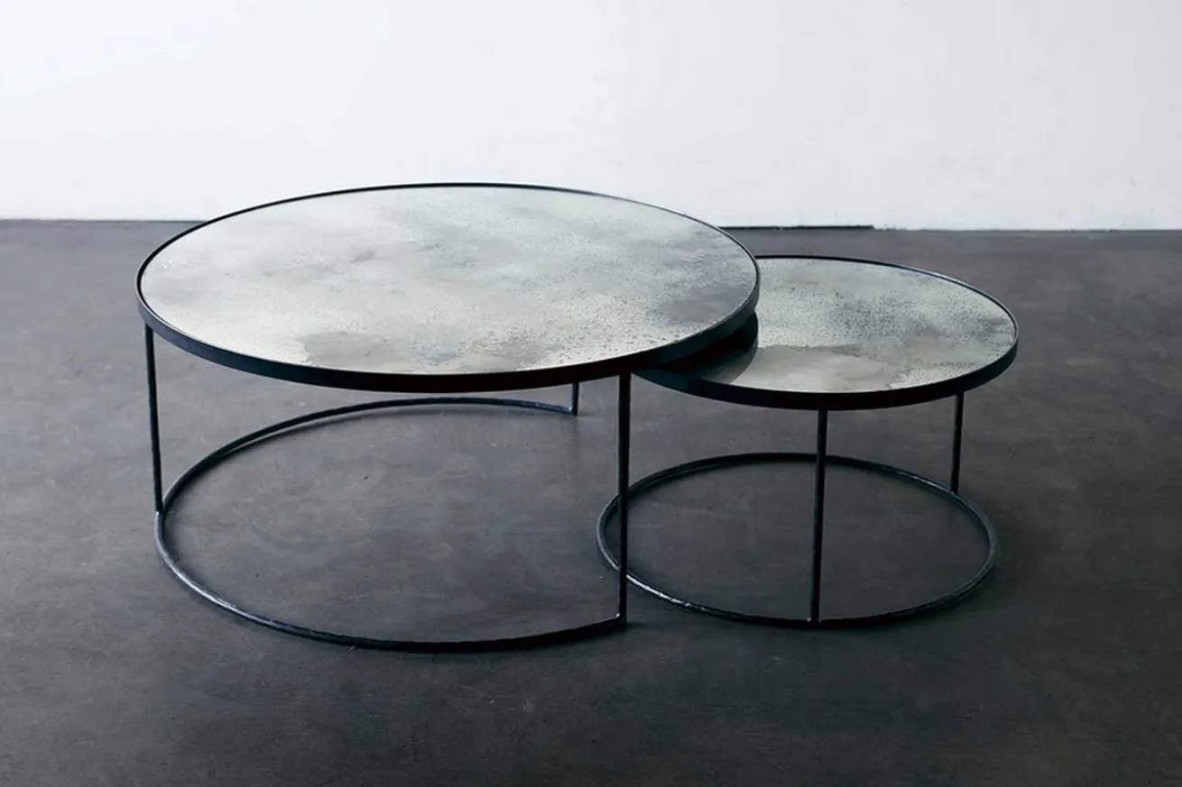 Stilvoll angefertigt bilden die zwei zusammengehörenden Couchtische einen eleganten Kontrast zum eingerichteten Wohnraum. Das 2er-Set besteht aus einer schwarzen Glasplatte und einem schwarzen Metallgestell, das mindestens genauso rund ist wie die Platte selbst. Durch das filigrane Gestell wird dem Sofatisch etwas Eleganz verliehen.