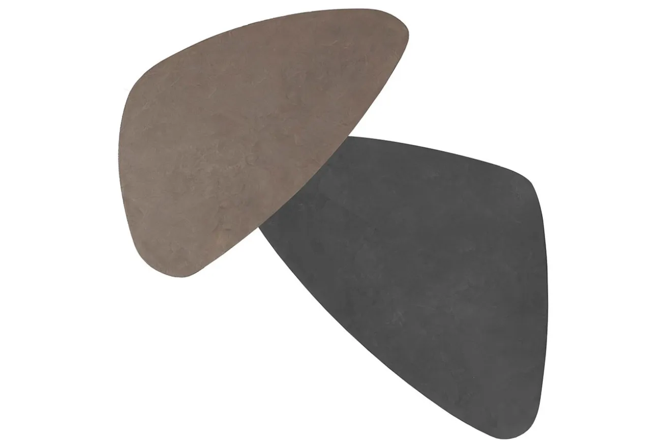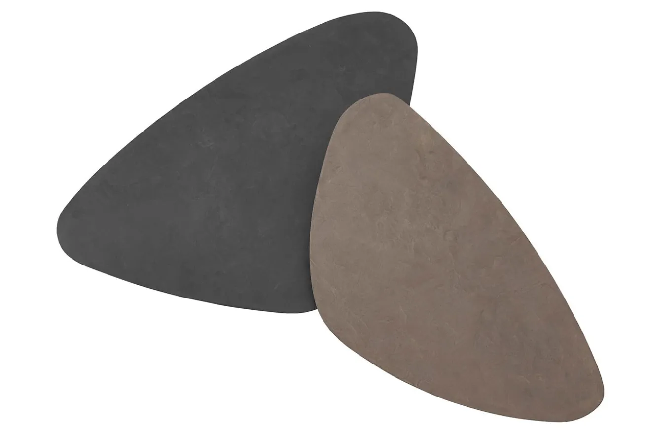 Jeder Tisch des Sets präsentiert eine einzigartige dreieckige Oberfläche aus Mortex, die in verschiedenen Schwarznuancen gehalten ist. Diese raffinierte Farbgebung verleiht den Tischen eine ansprechende Tiefe und einen Hauch von Mystik, während die filigrane Struktur des Mortex eine luxuriöse Haptik und ein modernes Erscheinungsbild bietet.