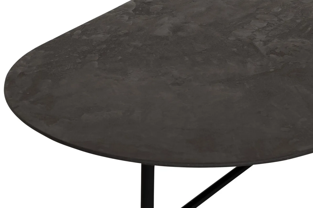 Die Tischplatte besteht aus robustem schwarzen Mortex, einem Material, das nicht nur langlebig ist, sondern auch eine edle Optik bietet. Die glatte Oberfläche verleiht dem Tisch eine moderne Ästhetik und macht ihn zum Blickfang in jedem Raum.