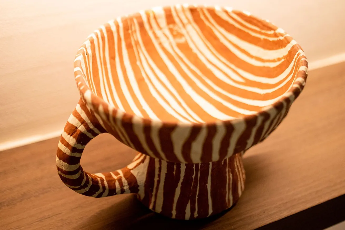 Lassen Sie sich von unserer kunstvollen Dekoration aus Pappmaché in Weiß-Rot verzaubern. Dieses einzigartige Dekoobjekt vereint Kreativität und Eleganz, um jedem Raum eine charmante Note zu verleihen.