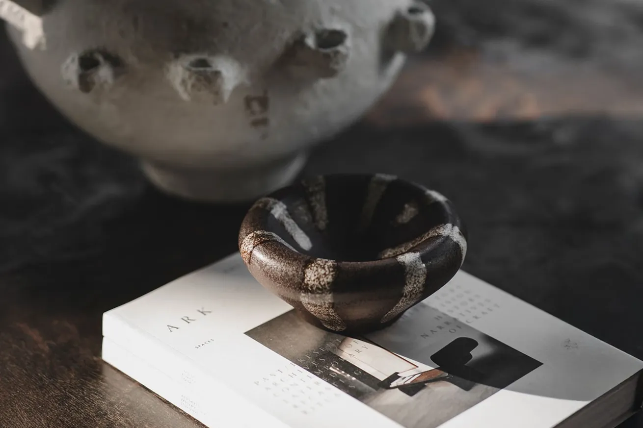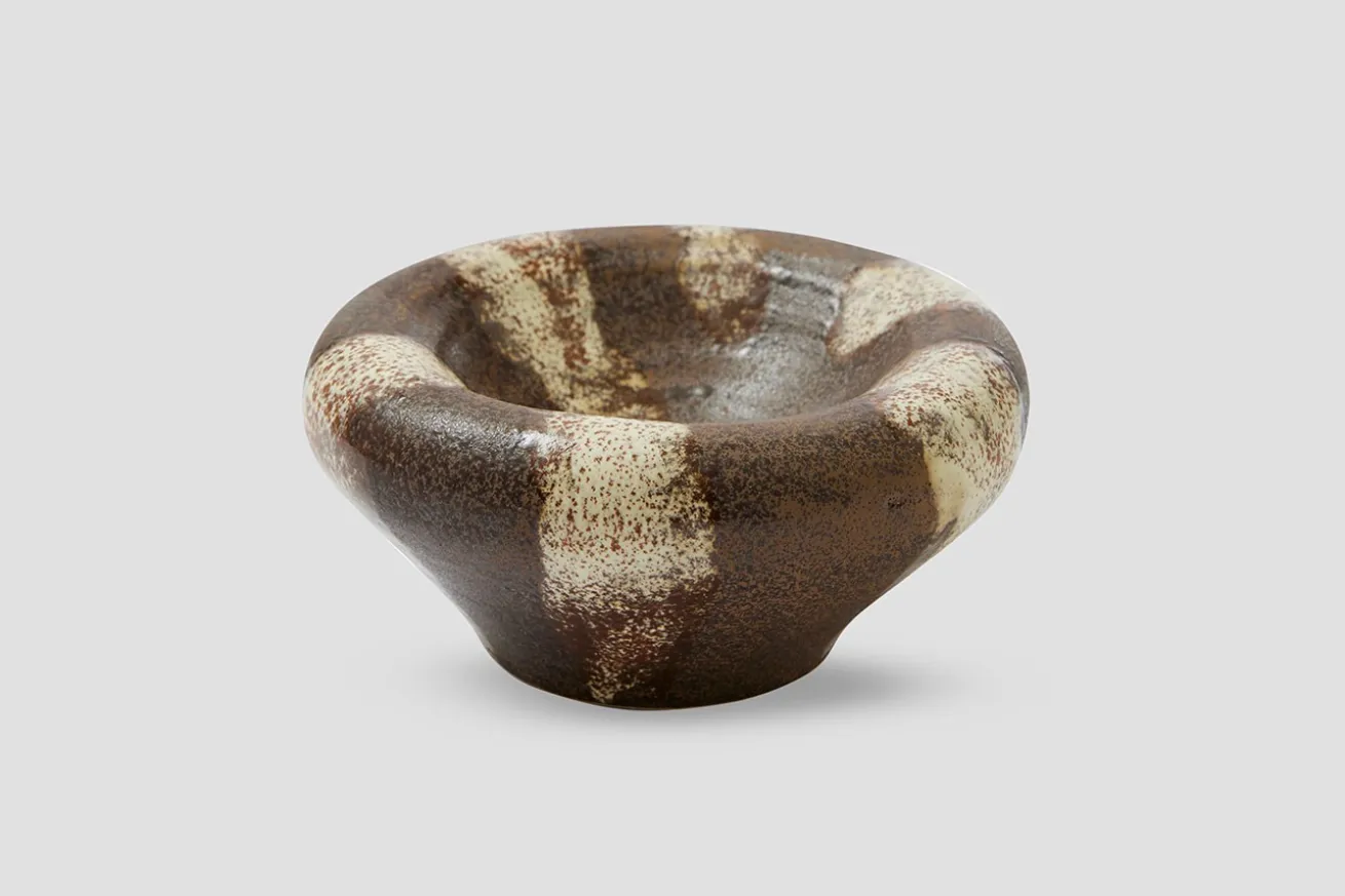 Die Schale Romi ist ein dekoratives Stück, das rustikalen Charme und elegante Schönheit ausstrahlt. Mit ihren braun-weißen Streifen und der weichen, massiv geformten Schale ist sie ein wunderschönes Kunstwerk, das jeden Raum aufwertet. Jede Schale ist handbemalt mit einer reaktiven Glasur, wodurch jedes Stück durch die variierenden Farben und Oberflächen ein Unikat ist. Die satte Tiefe und Leuchtkraft der Glasur verleihen der Schale einen authentischen, handgefertigten Charakter. Mit ihrer rustikalen Oberfläche und dem sanften Design ist Remi mehr als nur eine Schale – sie ist ein Wohnaccessoire, das Ihrem Zuhause Wärme und Charakter verleiht. Perfekt als Dekoration auf dem Tisch, im Regal oder als Teil Ihrer Sammlung schöner Objekte. Die Schale ist nicht lebensmittelecht und eignet sich daher ideal als stilvolles Dekorationsobjekt zum Präsentieren kleiner Schmuckstücke oder um einen schönen visuellen Effekt auf Regalen oder Tischen zu erzielen. Lassen Sie Remi eine einzigartige und künstlerische Bereicherung für Ihr Zuhause sein und bringen Sie Authentizität und eine lebendige Atmosphäre in Ihre Räume.
