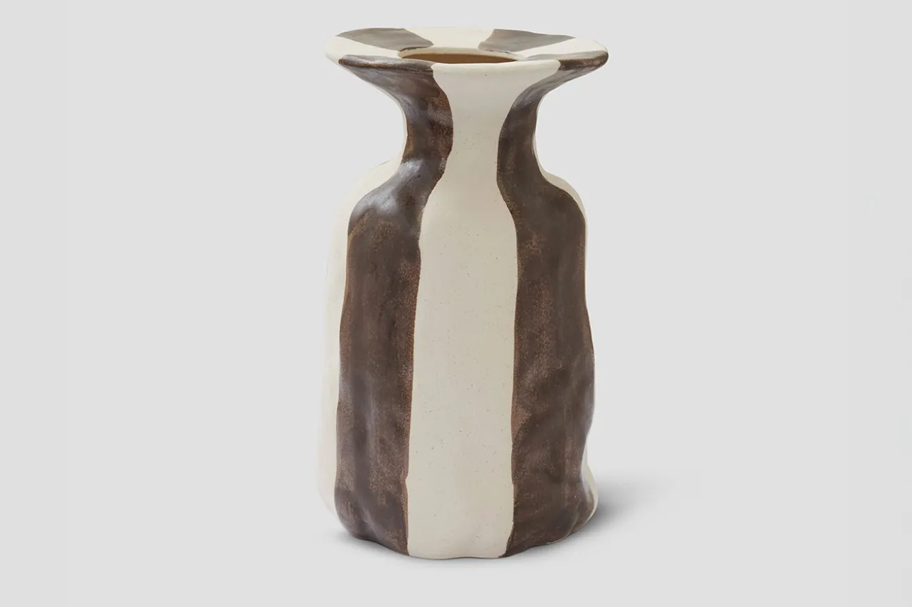Verleihen Sie Ihrem Zuhause mit unserer gestreiften Raia-Vase einen Hauch von Eleganz und Verspieltheit – ein Detail, das jeden Raum verwandelt. Mit ihren weichen, abstrakten Formen erzeugt diese Vase ein Gefühl von Bewegung und Lebendigkeit, während die zeitlosen Streifen an klassischen Stil erinnern. Stellen Sie die Vase auf einen Tisch oder ein Regal und lassen Sie sie zu einem wunderschönen Dekorationsobjekt werden. Ob einzeln oder in einer Gruppe arrangiert, sie verleiht dem Raum eine verspielte Eleganz und belebt ihn. Sie ist in ihrer schlichten Form genauso schön wie gefüllt mit Blumen und bringt Farbe und Leben in Ihren Alltag.