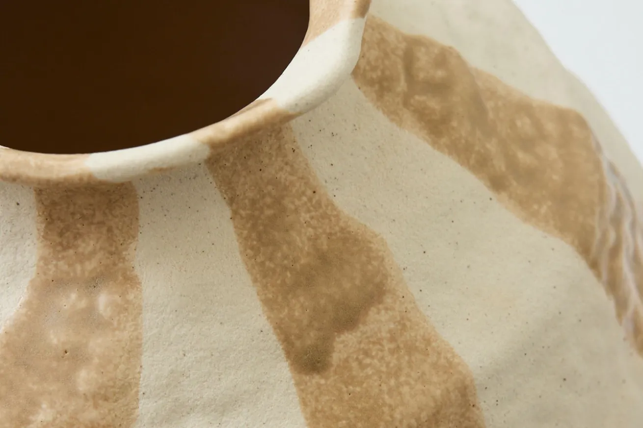 Verleihen Sie Ihrem Zuhause mit unserer gestreiften Raia-Vase einen Hauch von Eleganz und Verspieltheit – ein Detail, das jeden Raum verwandelt. Mit ihren weichen, abstrakten Formen erzeugt diese Vase ein Gefühl von Bewegung und Lebendigkeit, während die zeitlosen Streifen an klassischen Stil erinnern. Stellen Sie die Vase auf einen Tisch oder ein Regal und lassen Sie sie zu einem wunderschönen Dekorationsobjekt werden. Ob einzeln oder in einer Gruppe arrangiert, sie verleiht dem Raum eine verspielte Eleganz und belebt ihn. Sie ist in ihrer schlichten Form genauso schön wie gefüllt mit Blumen und bringt Farbe und Leben in Ihren Alltag.