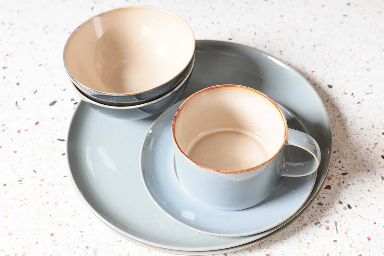 Mit diesem hellblauen Teller aus Steingut werden alle Träume eines perfekt gedeckten Frühstückstisches wahr: Der Teller mit einem Durchmesser von 22cm und einer Höhe von 1,1cm aus Steingut eignet sich hervorragend als Frühstücksteller. Wenn das Dessert Sonntags etwas üppiger ausfällt, darf dieses strahlende Exemplar mit glatter Oberfläche auch ruhig als Kuchenteller herhalten. Zwei Stücke Torte sind also durchaus erlaubt.