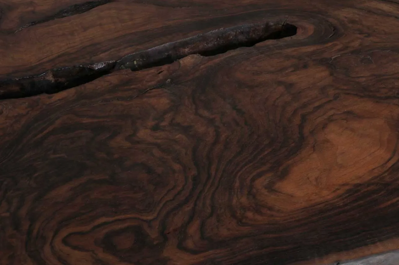 Für alle, die dunkles Holz lieben, ist dieser Esstisch DAS Herzensobjekt schlechthin! Wie könnte man auch zu dem Produkt aus Nussholz samt seiner ausdrucksstarken Maserung und dunklen Farbe auch „Nein“ sagen?