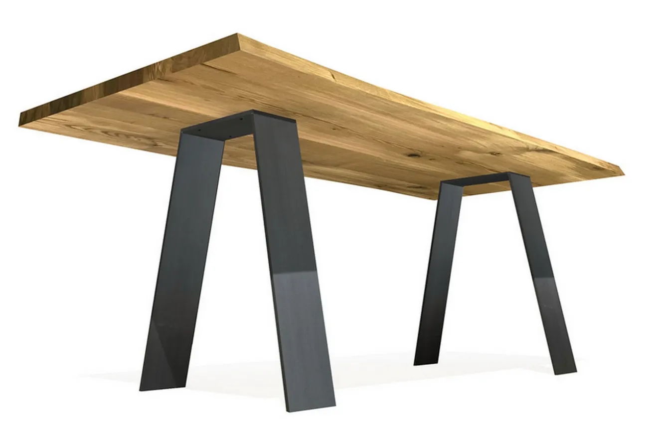 Dass es sich bei diesem Tisch um ein Produkt aus dem sehr harten und widerstandsfähigem Holz der Eiche handelt, die auf dunkelgrauen Stahlbeinen steht, haben auch sicherlich Sie schon bemerkt. Die natürliche Farbe und gleichmäßige Maserung der Holzart wurde hier beibehalten, indem die Oberfläche unbehandelt ist. Die Platte besteht aus einzelnen Holzbohlen, die zusammengesetzt jene Holzplatte ergeben, welche eine organische Kante hat. Durch ihren Look erinnert sie an Landhausdielen. Mit einer Breite von 140cm, einer Tiefe von 90cm, einer Höhe von 76cm und einer Stärke von 3cm eignet sich der Massivholztisch nicht nur ins Esszimmer, sondern auch in Küchen im Landhaus- oder modernen Stil, denn das strahlt das Massivholzmöbel auch aus: Wärme und Gemütlichkeit. Kombiniert mit Stühlen der gleichen Farbe der Beine mit kuscheligen Fellen oder Kissen wird das Massivholzmöbel zum Treffpunkt aller Familienmitglieder.