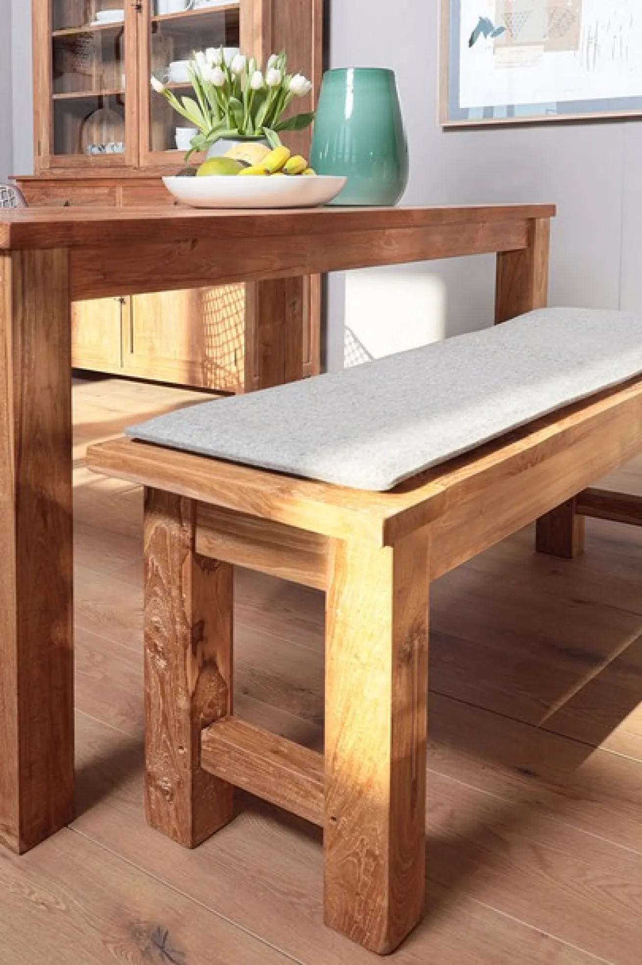 Durch seine dunkle Farbe lässt er sich gut mit anderen dunklen Möbeln, am besten welche, die ebenfalls aus Teak sind, kombinieren und können Ihrem im Landhausstil eingerichteten Zuhause etwas mehr Gemütlichkeit und Rustikalität verschaffen. Perfekt lässt er sich mit einer dazu passenden Sitzbank oder Stühlen in verschiedenen pastelligen Farben kombinieren. Probieren Sie’s aus! Er eignet sich auch perfekt für einen überdachten Außenbereich.